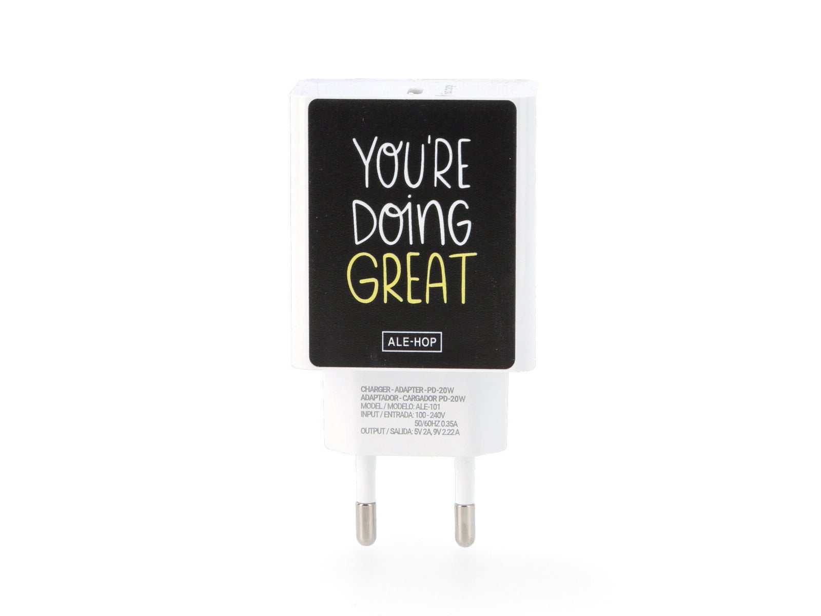 Imagina nunca más tener que buscar desesperadamente un enchufe. Con el Cargador tipo-c 1 puerto – Great de ALE-HOP en tu bolsillo, siempre tendrás el poder en tus manos.