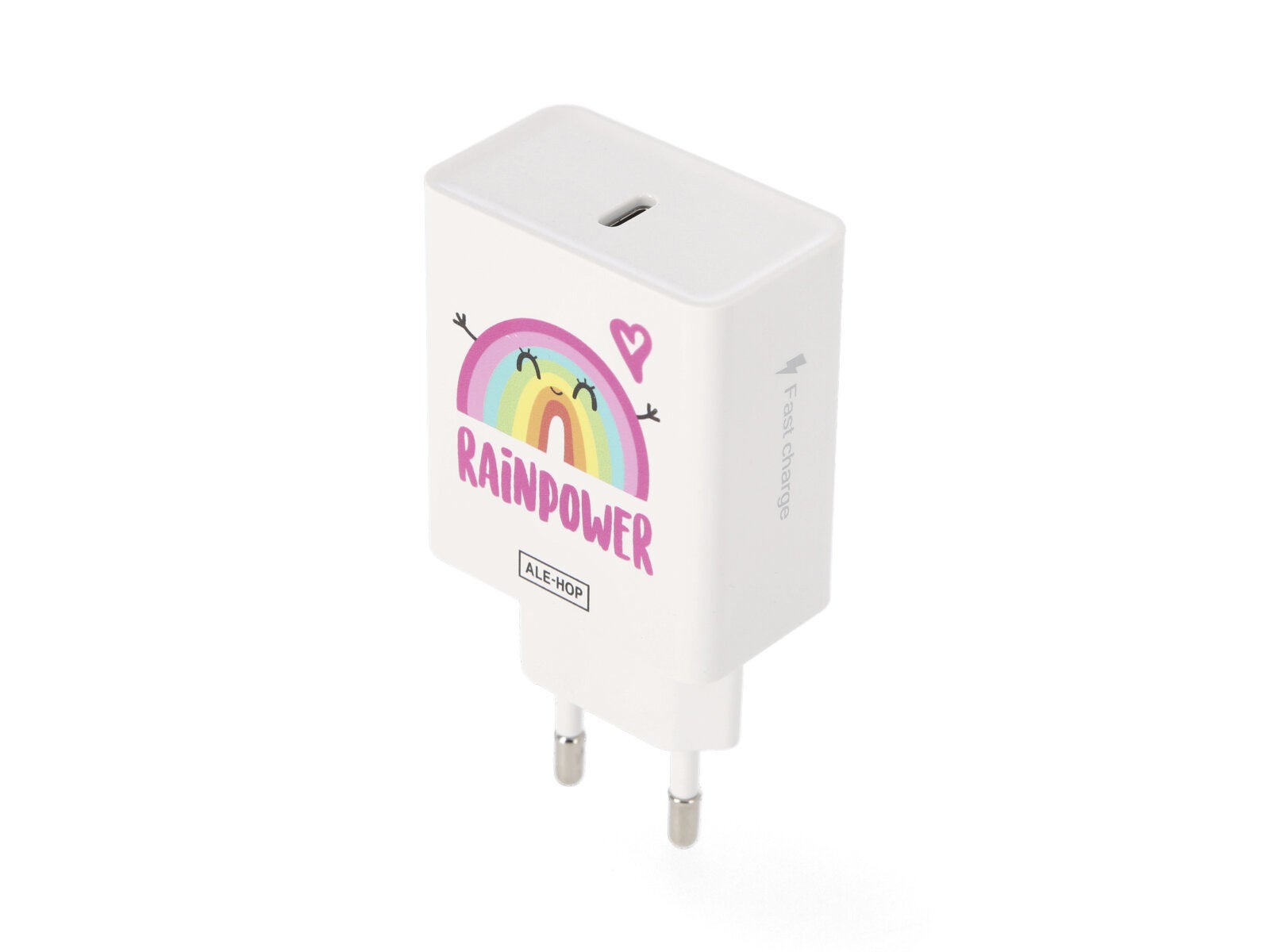 Con el Cargador tipo C - Rainpower de ALE-HOP, estar al 100% nunca fue tan fácil. ¡Hazte con uno y lleva la diversión a tu rutina de carga!