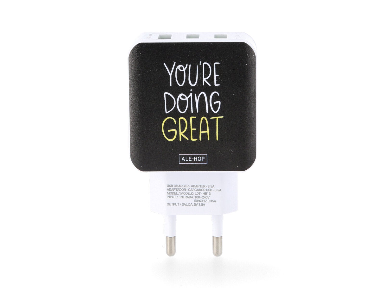 El cargador usb 3 puertos – Great es la solución que necesitas para mantener tus gadgets al 100% mientras encuentras nuevas aventuras con ALE-HOP. ¡No te quedes sin batería!