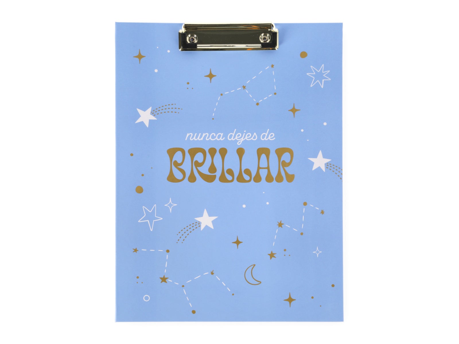 Carpeta clip metálico “Nunca dejes de brillar” – Diseño estrellado