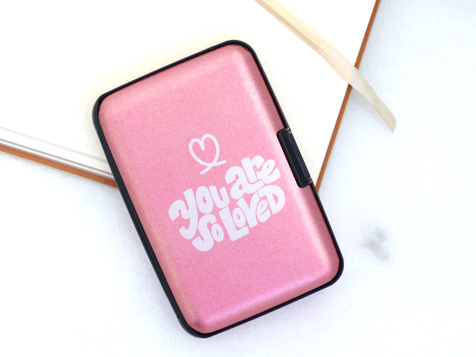Descubre la maravillosa Cartera protege tarjetas - You are so loved, un accesorio que no solo roba miradas con su acabado metálico rosa brillante, sino que también ¡te llenará de amor y confianza en cada uso! Ideal para las almas románticas que desean mantener sus tarjetas a salvo mientras añaden un toque de encanto a su bolso.