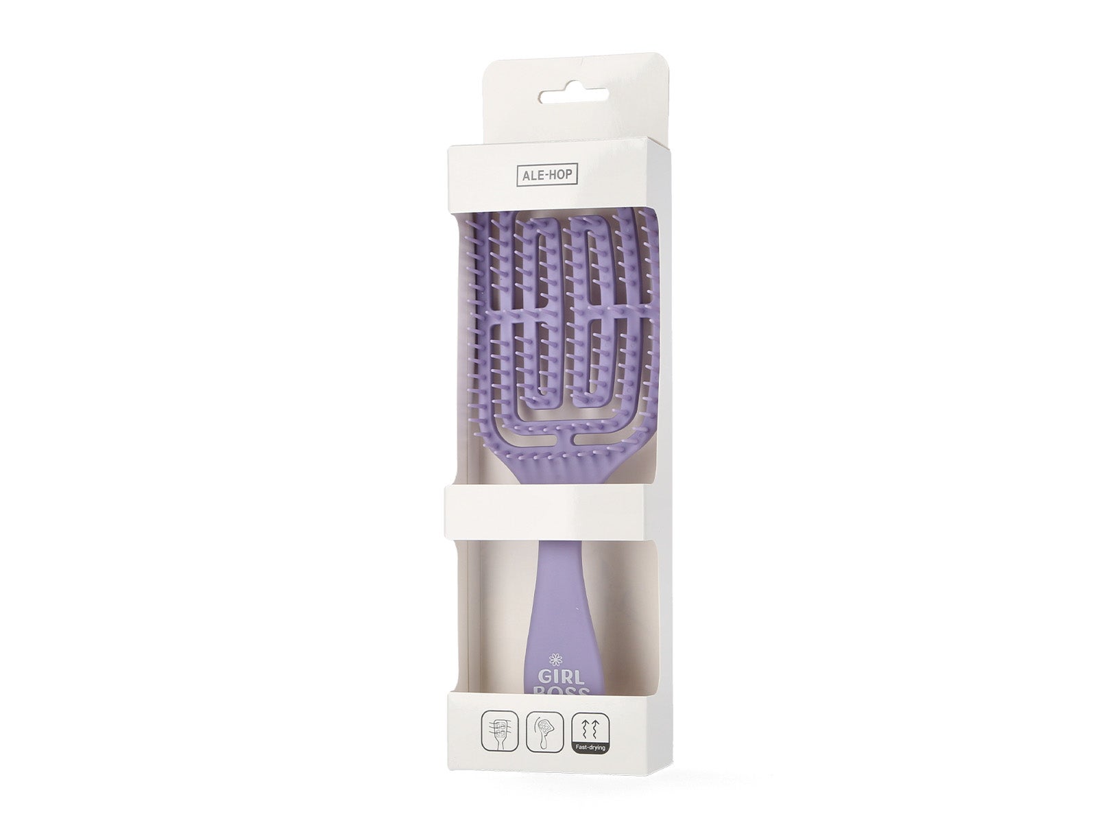 Con el cepillo de pelo flexible lavanda, desenreda tu melena con una suavidad que te hará sentir en las nubes. Este cepillo se convertirá en tu compañero fiel, ya sea que lo lleves contigo en el bolso, la mochila o lo uses en casa.
