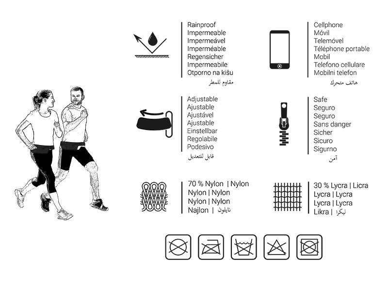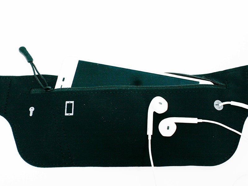 Diseño: riñonera negra con un bolsillo con cremallera para mayor seguridad. Cuenta con una salida para tus auriculares, para que puedas llevarlos conectados sin necesidad de tener el móvil en la mano.