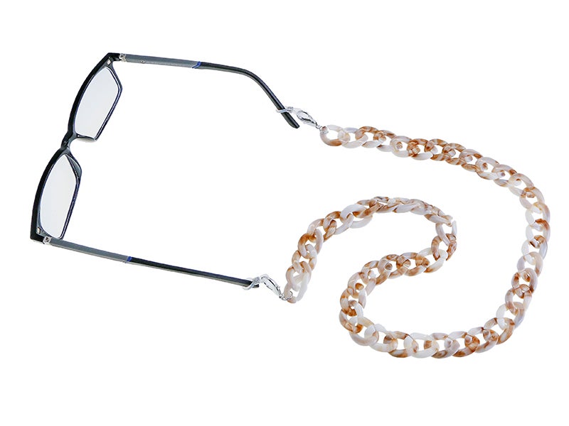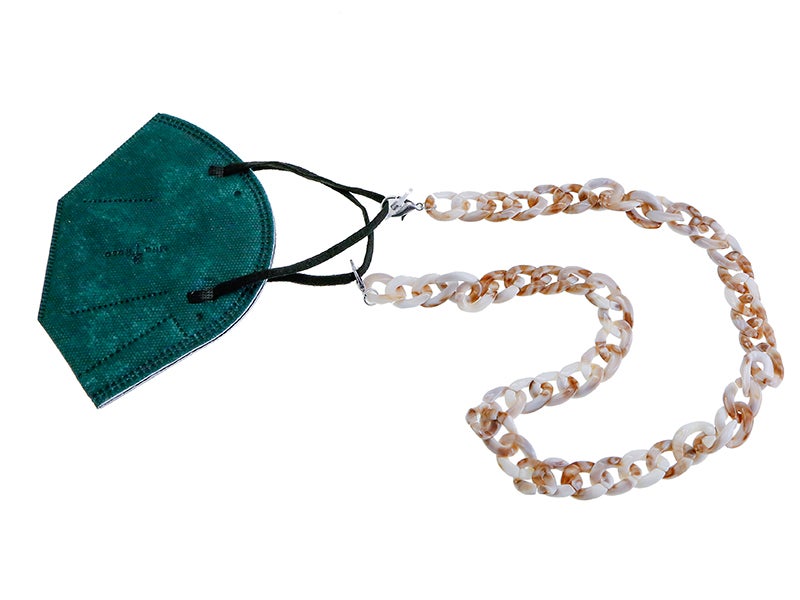 Diseño: cordón con forma de cadena de eslabones anchos. Incorpora ganchos en los extremos para que los sujetes a tu mascarilla, o gomas de silicona ajustables para que enganches a las patillas de tus gafas.