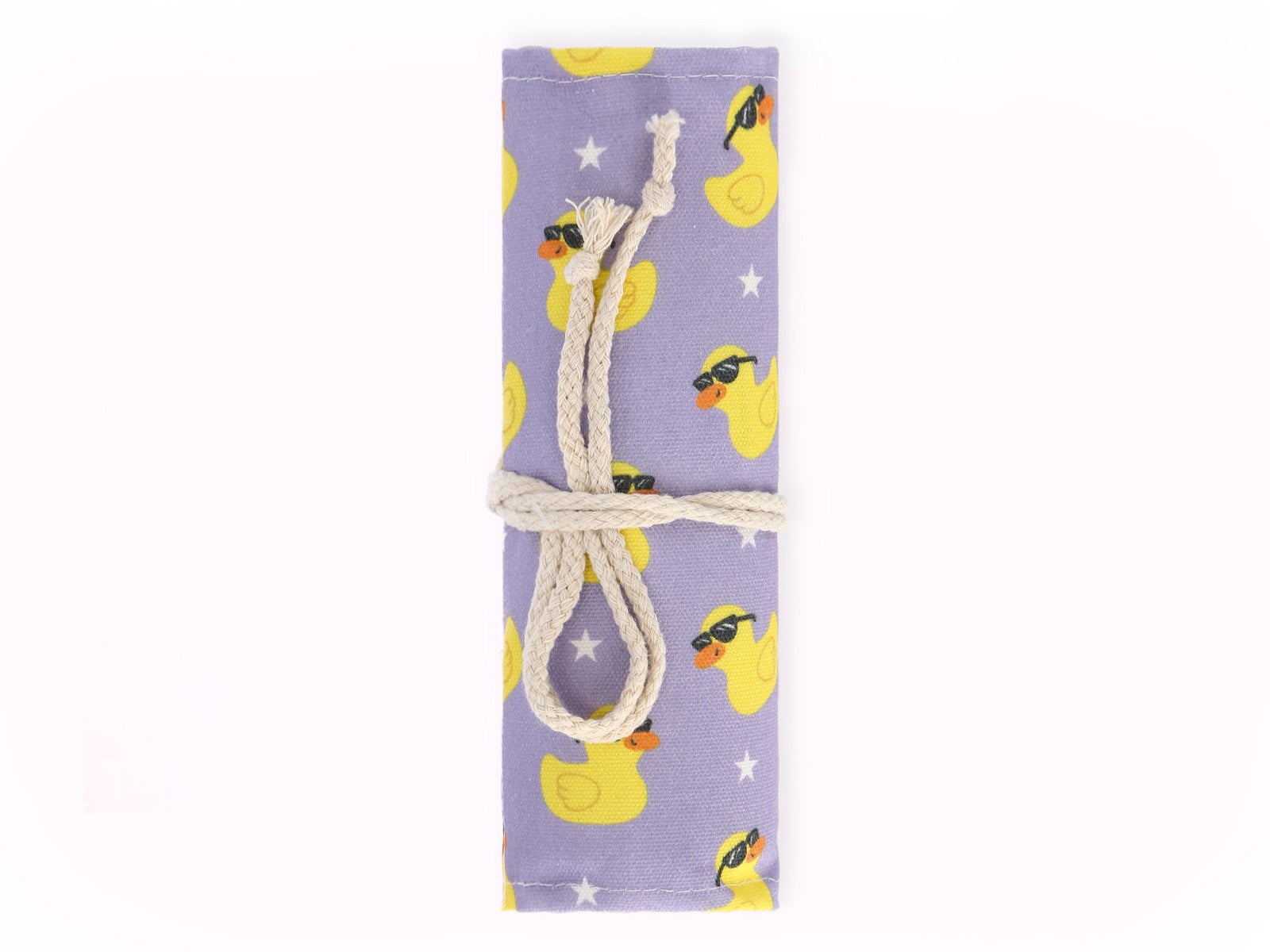 - Diseño: Despliega el estuche y sorpréndete al ver todo en su lugar, con un simpático estampado de patos.