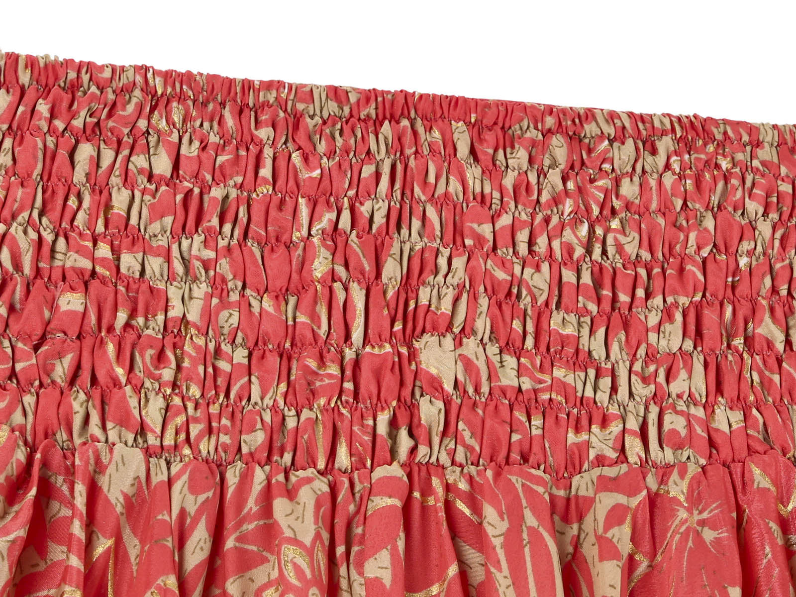 - Tonalidades naranjas vibrantes con un estampado floral que gritan ¡verano!