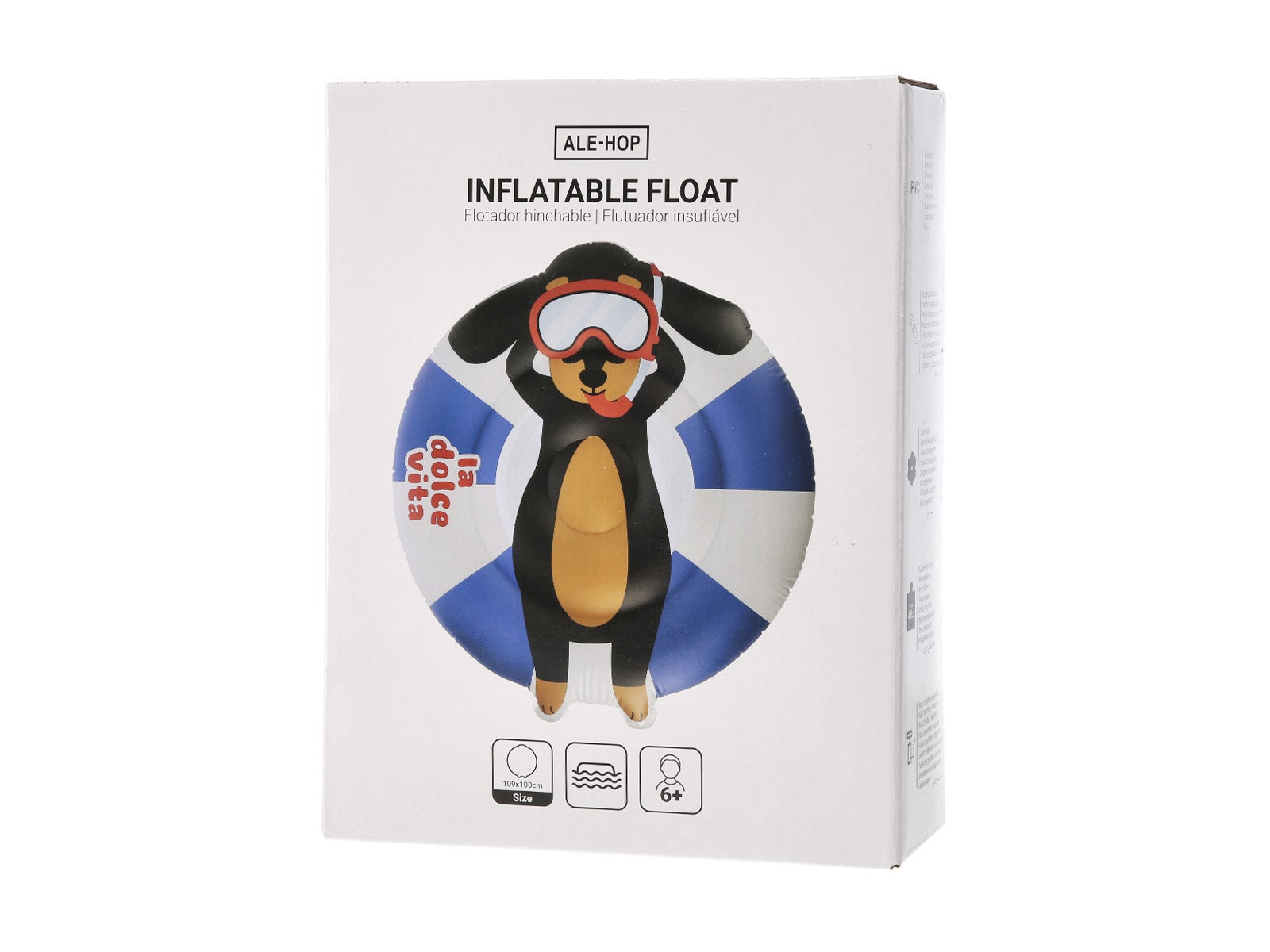 ¡Diversión y estilo en el agua! El Flotador hinchable - La dolce vita de ALE-HOP es resistente, ligero y cuenta con el diseño de perro salchicha más divertido del verano. ¡Imprescindible para tu piscina!