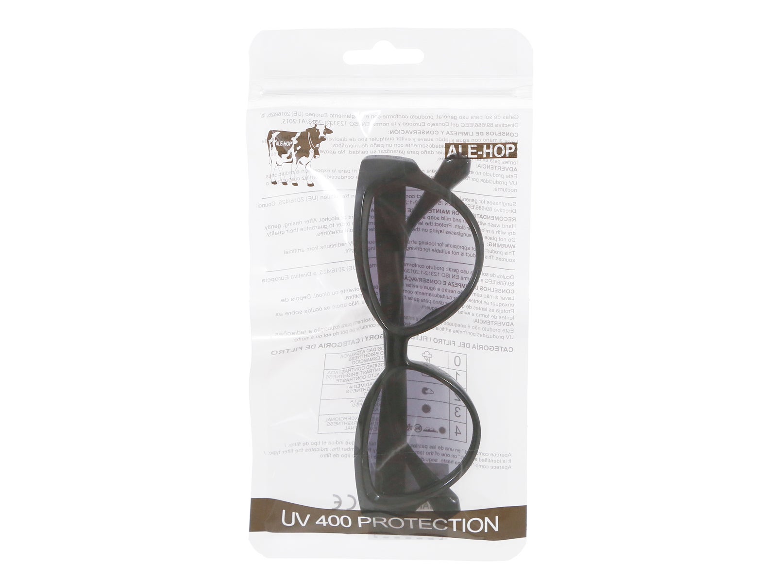 Impresiona a todos con estas Gafas de sol Cat-Eye de ALE-HOP. Con su diseño de ojo de gato, marco negro y lentes oscuros, son la combinación perfecta de estilo y practicidad. Incluyen protección UV 400 y una funda de tela para mantener tu mirada elegante.