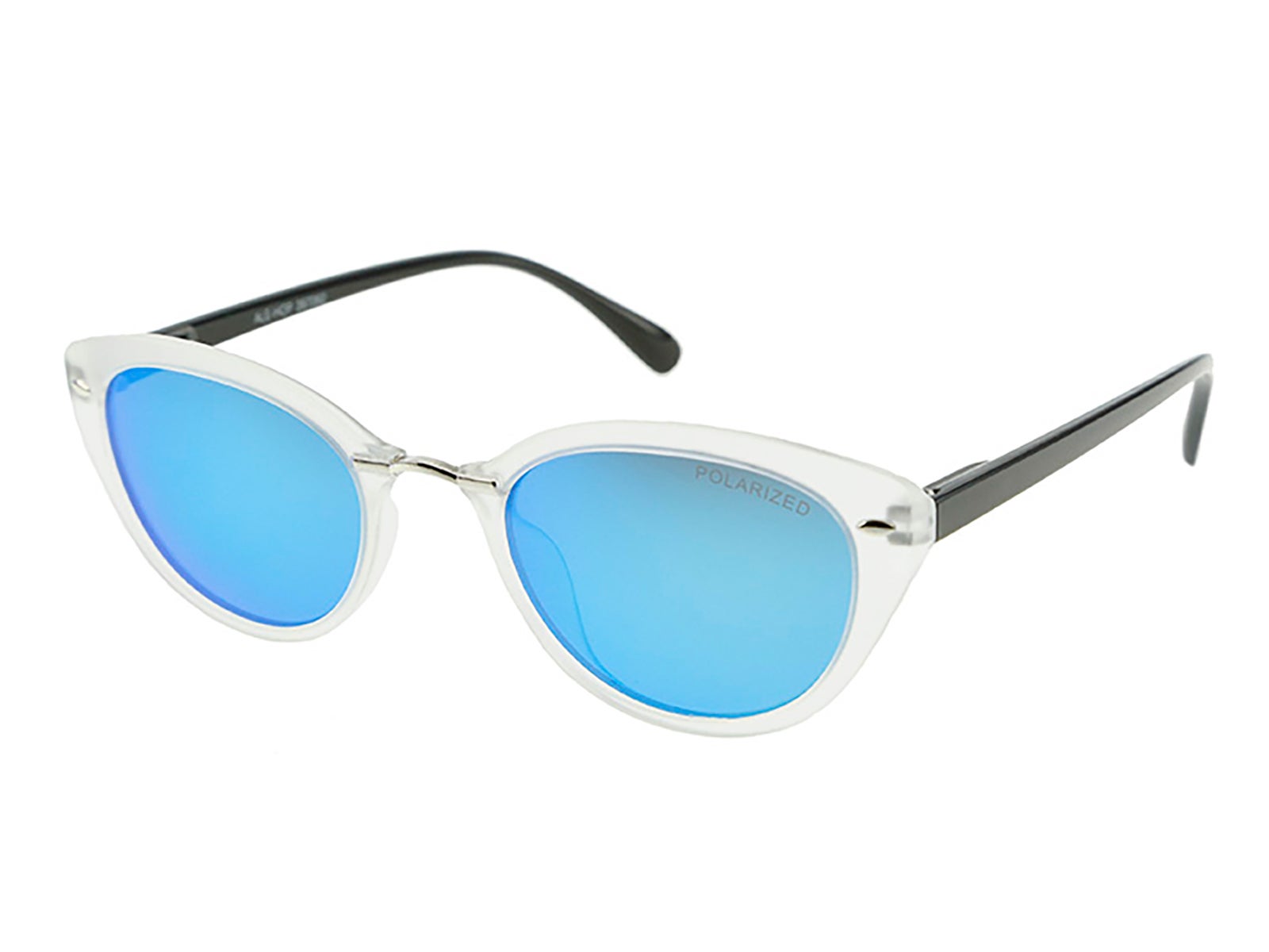 Luce estilazo con las Gafas de sol polarizadas estilo retro-chic de ALE-HOP. Un contraste en acabados de montura blanca y patillas negras, lentes azules polarizadas que protegen del daño solar. Ideal para brillar en cada ocasión.