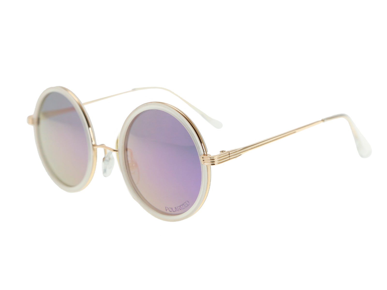 Gafas de Sol Polarizadas con diseño retro de ALE-HOP. Lentes redondas, armazón blanco con detalles dorados y degradado de color en las lentes para un toque único. Protección y estilo en un solo accesorio. ¡Imprescindibles en tu temporada de sol!