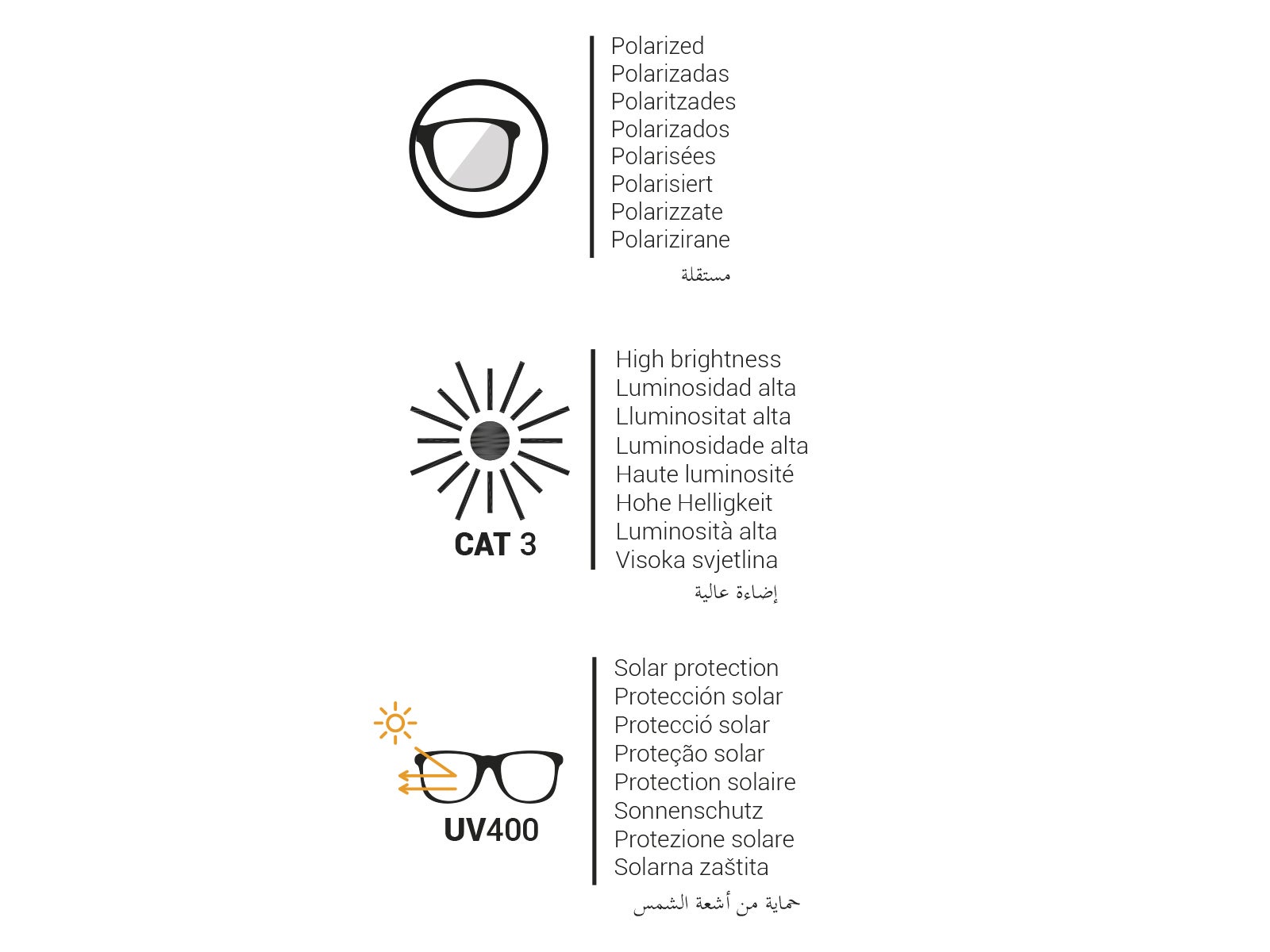 - Lentes: Oscuros y polarizados. ¡Perfectos para un día soleado!