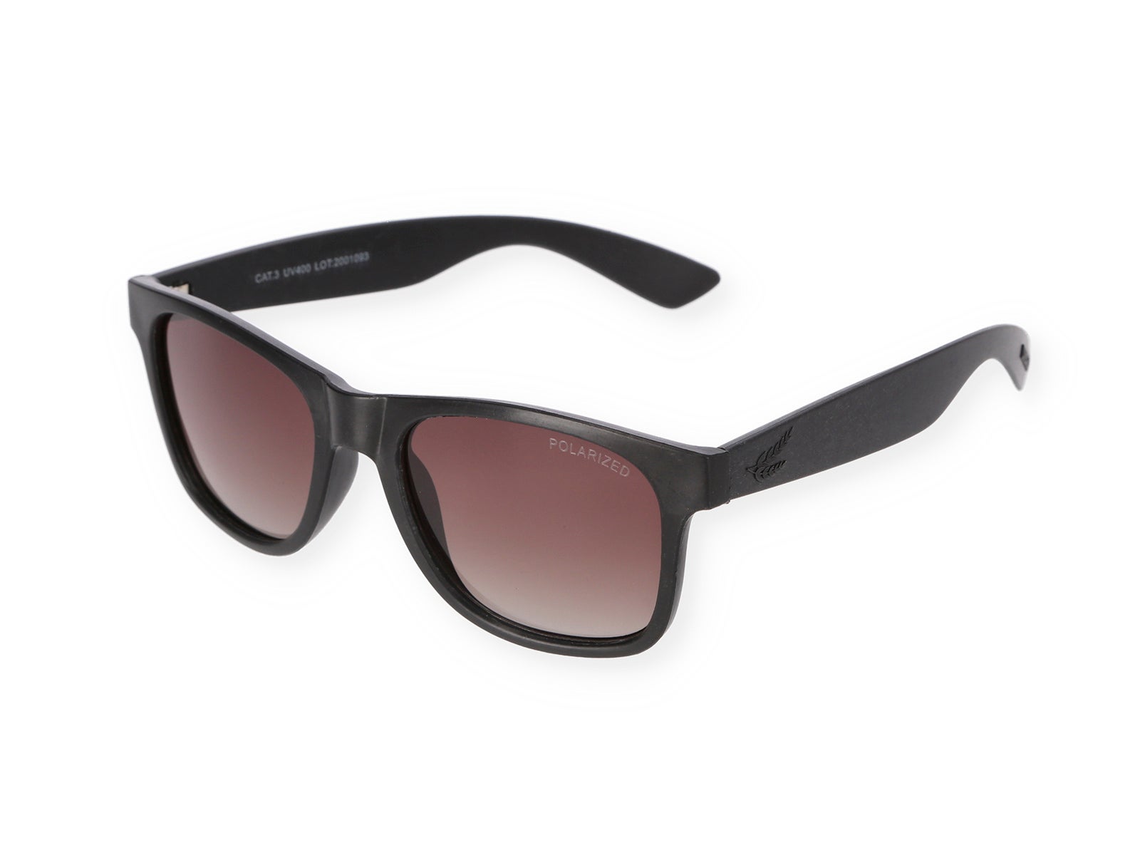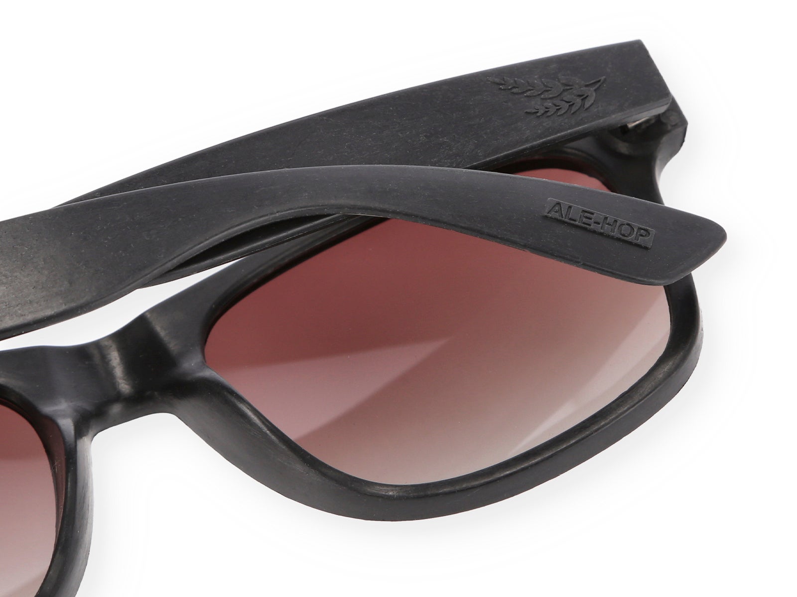 Luce espectacular con las Gafas de Sol ALE-HOP, inspiradas en el modelo Wayfarer para un look atemporal. Montura oscura y lentes gradientes marrón. Hechas de fibra de trigo, son polarizadas para proteger tus ojos de los rayos UV.