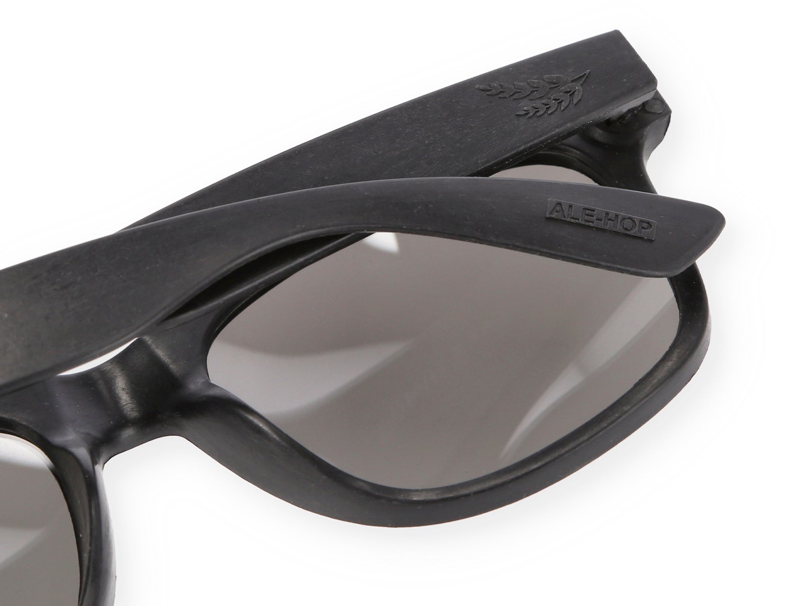 Impresionantes Gafas de Sol Negras ALE-HOP con montura plateada. Diseño moderno, hechas con materiales de calidad y lentes polarizadas para proteger tus ojos de los rayos UV. ¡No solo son atractivas, también son sostenibles!