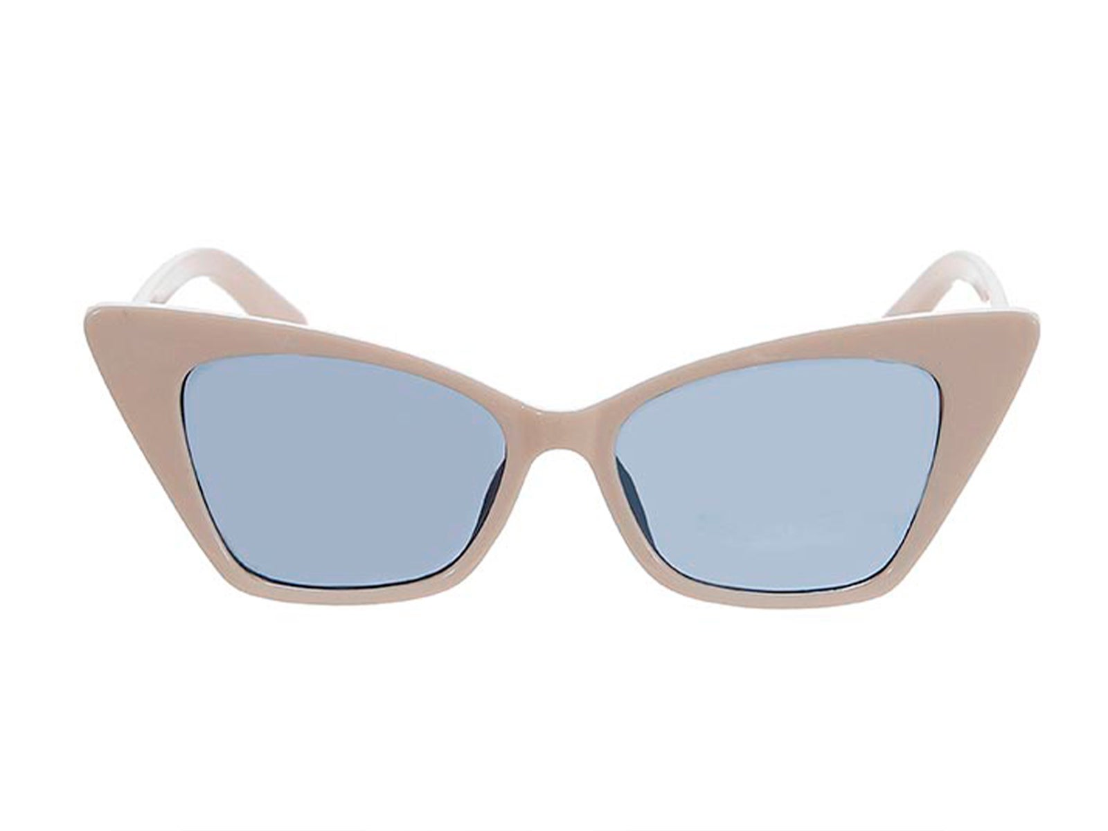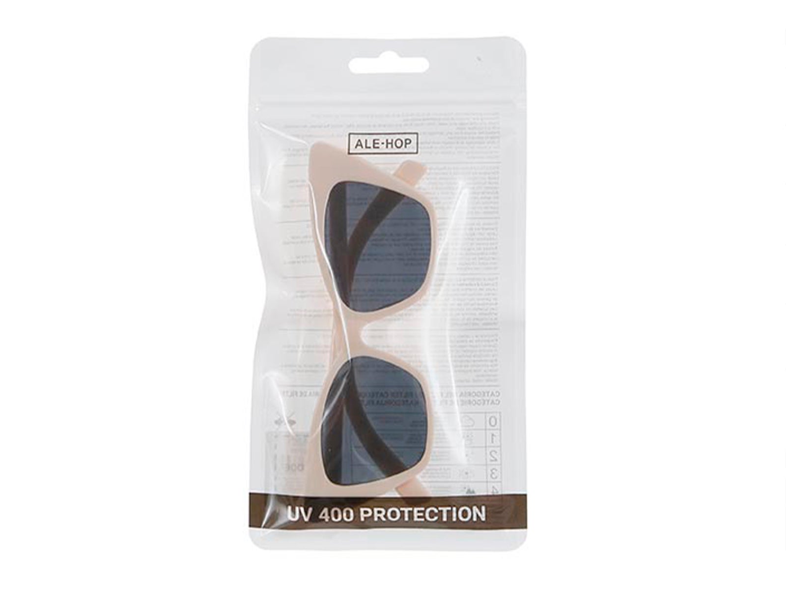 Gafas de Sol Vintage Blanco Roto de ALE-HOP con diseño retro cat-eye. Elije lentes azules para un estilo fresco o lentes oscuros para misterio y elegancia. Con lentes polarizadas y protección UV. Presentadas en un embalaje transparente.