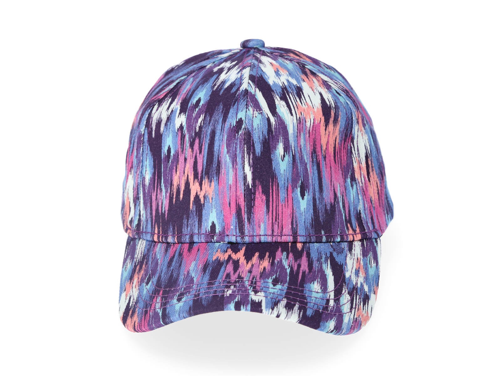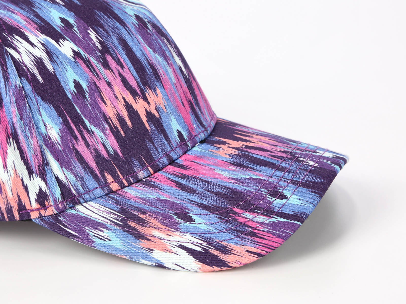 - Diseño: Gorra con estampado en variados tonos lilas y visera curva.