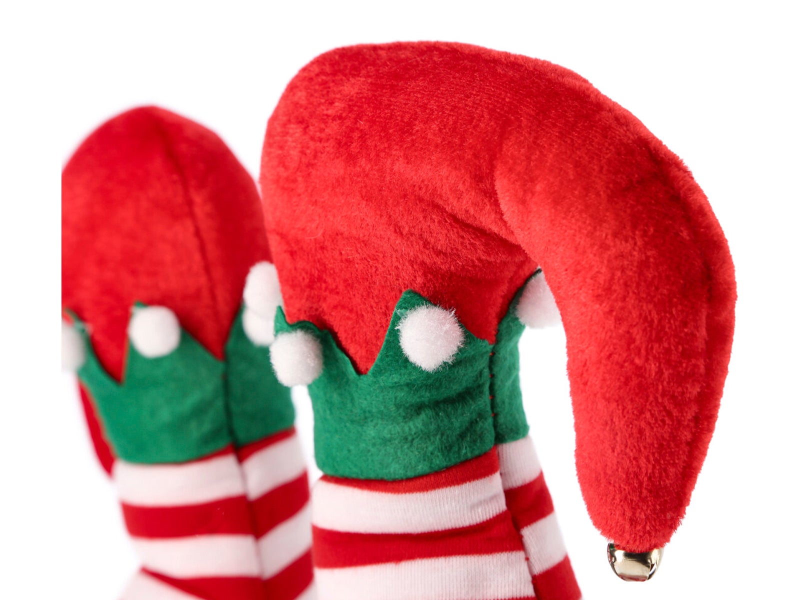 - Gorro navideño con forma de piernas de duende
