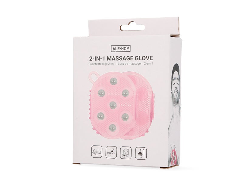 Con el guante de masaje rosa ALE-HOP, el cuidado personal nunca ha sido tan fácil ni tan divertido. ¡Dale a tu cuerpo el mimo que merece! Hasta la frase "RELAX" te recuerda que es momento de desconectar. Hazte con el tuyo y ¡prepárate para relajarte al máximo!