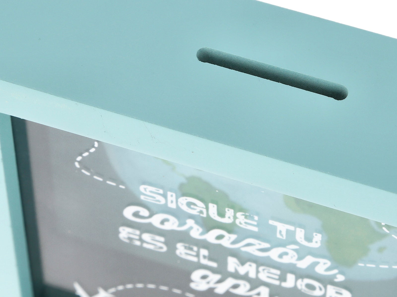 - Hucha de madera azul – Sigue tu corazón, es el mejor gps