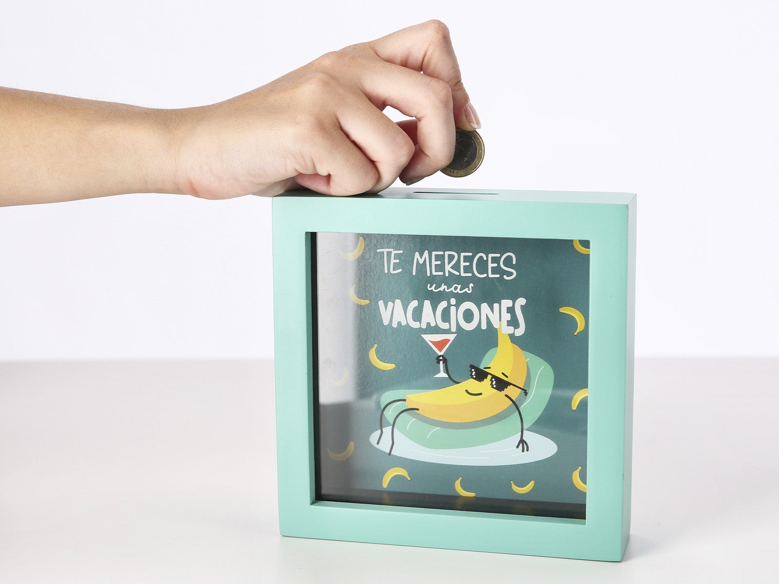 Si sueñas con escapar a ese destino paradisíaco, la Hucha de madera verde - Te mereces unas vacaciones es tu mejor aliada. Empieza a guardar esas monedas que rondan por tus bolsillos y, sin darte cuenta, estarás listo para tu aventura soñado. ¡Con esta hucha, la diversión comienza incluso antes de tus vacaciones!