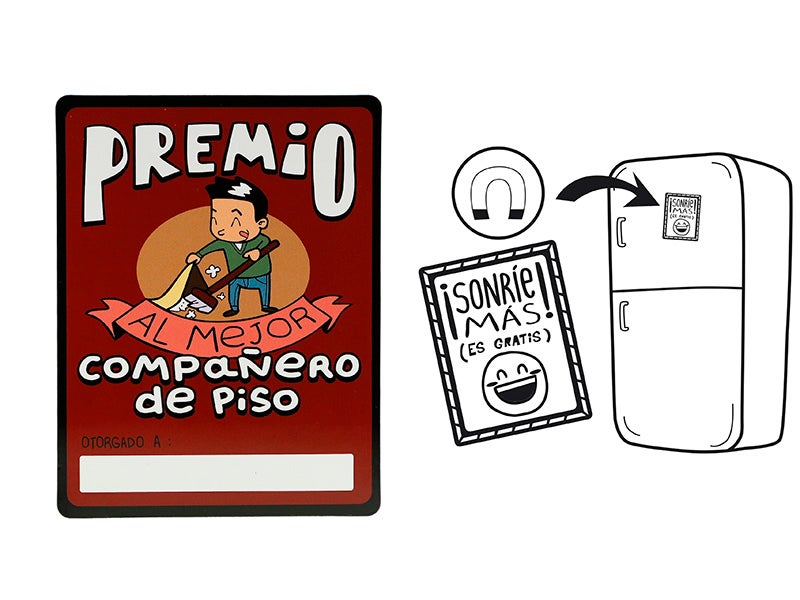 <p>ALE-HOP te trae una forma original y desenfadada de darle un toque de humor a las labores compartidas en casa con este divertido imán titulado 'Premio al Mejor Compañero de Piso'. Es una pequeña placa ilustrada en colores vivos y alegres que puedes pegar en tu refrigerador, o en cualquier superficie metálica, para dar reconocimiento a las tareas bien hechas en el hogar.</p>