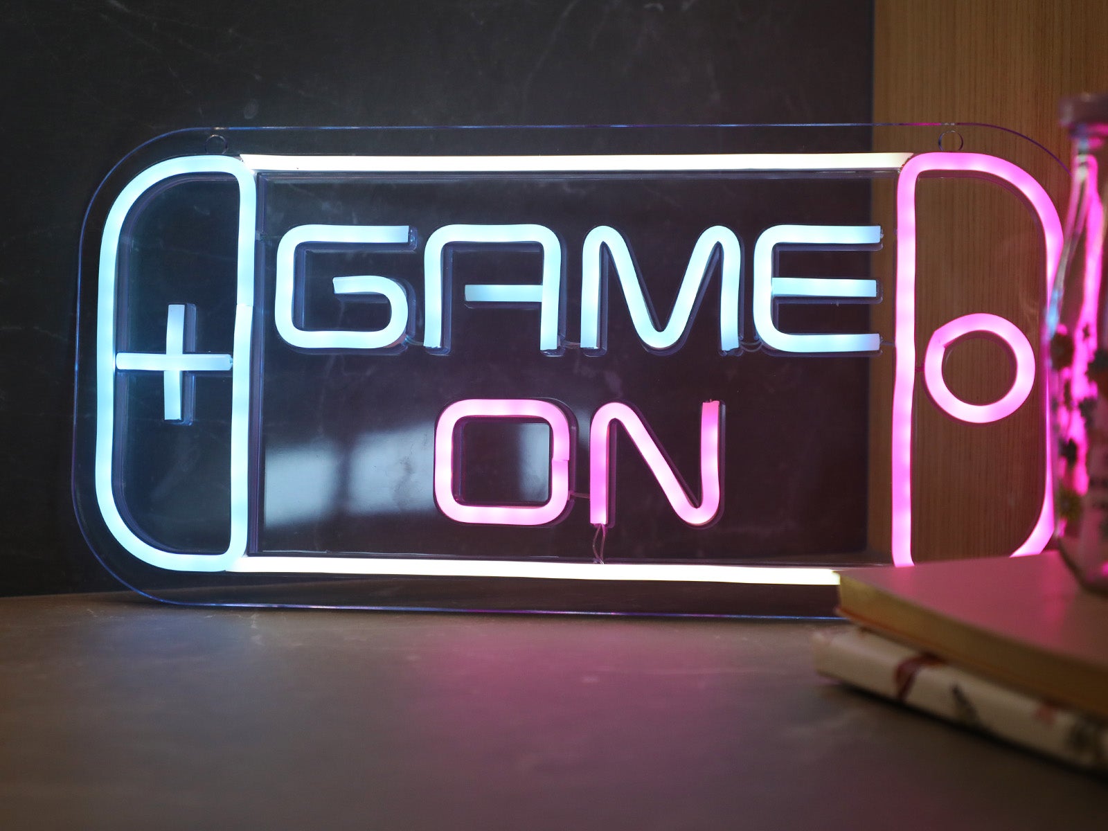 ¡Que el juego comience con el divertido y vibrante Letrero neón – Game on!