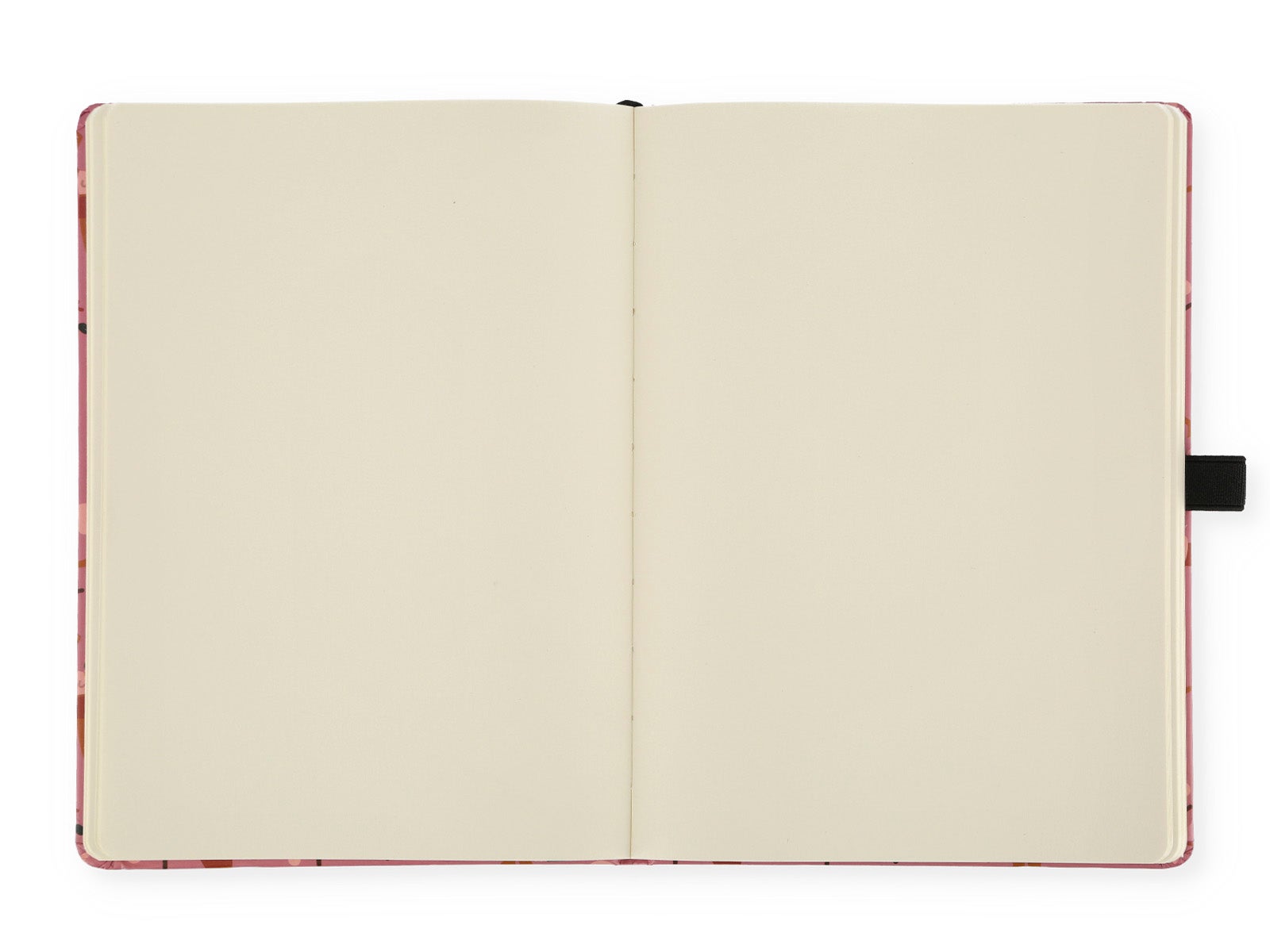Diseño: libreta sin anillas con banda elástica en el lateral para poder cerrarla y que no se te escape nada y goma para colocar tu boli favorito.