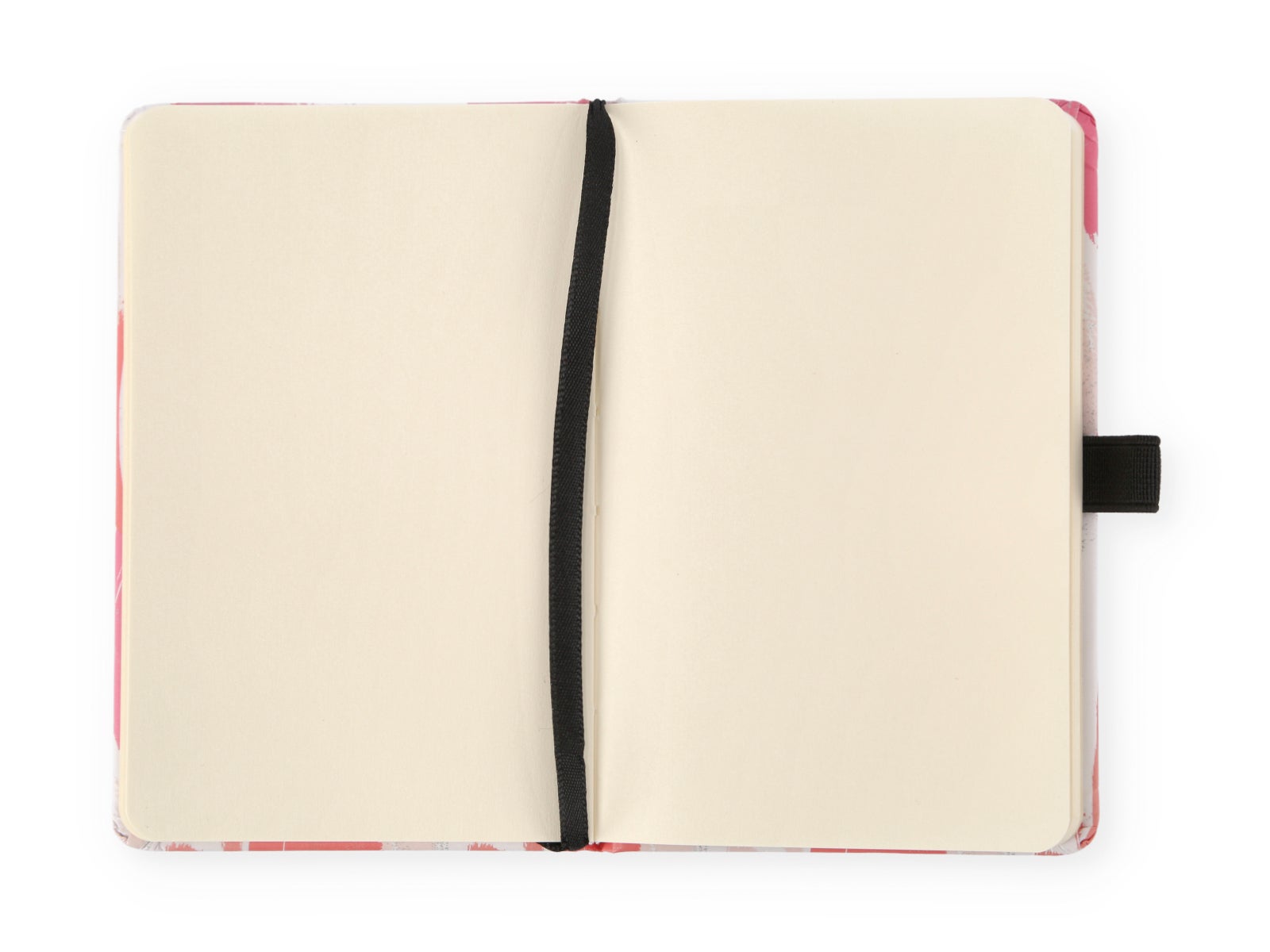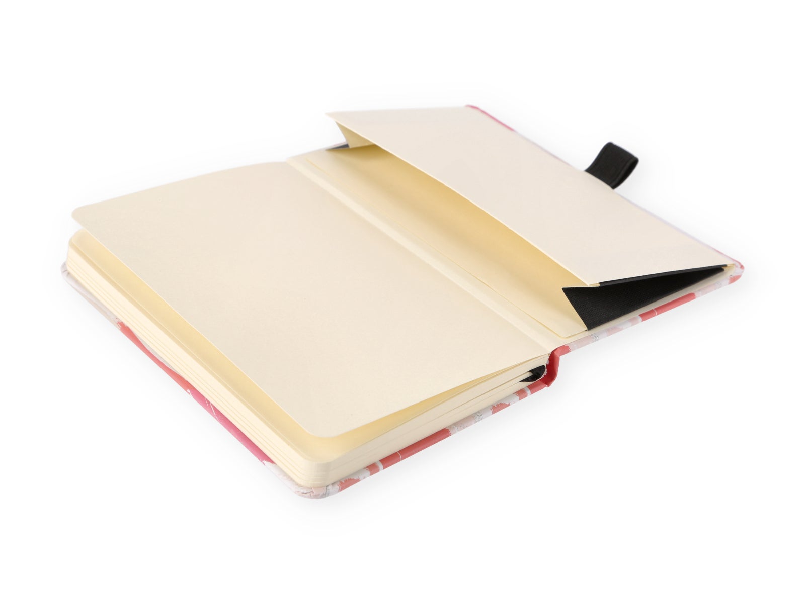 Libreta con cubierta de arte abstracto y frases inspiradoras, cierre elástico, papel color crema para escritura fluida, cinta marcadora. Tu aliado creativo ALE-HOP.