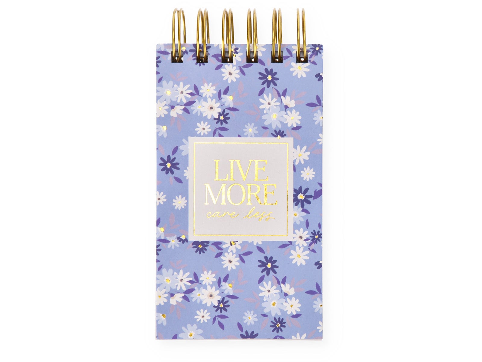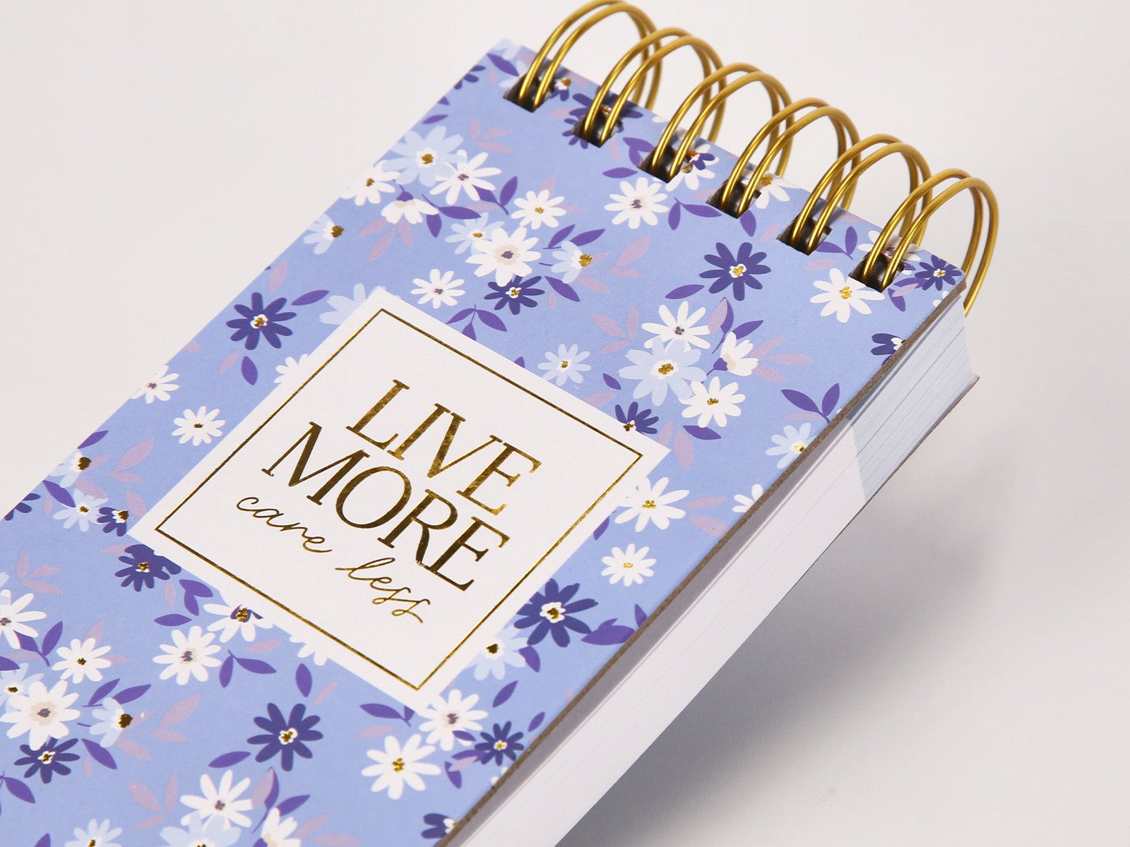 Organiza tus ideas y vive el momento con la Libreta azul con anillas superiores - LIVE MORE care less. Una compañera perfecta para no dejar volar tu creatividad. Sorprende a tus amigos y aligera la carga, ¡escribiendo todo lo que pase por tu mente!