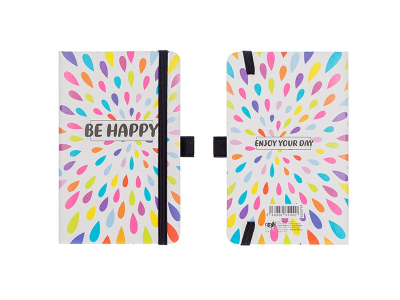Diseño: un estallido de color que con solo verlo te alegrará. De color blanca con gotas multicolor, texto central en la portada súper motivador ‘be happy’ y en la contraportada ‘enjoy your day’. Si cada día lees que tienes que ser feliz y que disfrutes tu día, al final lo conseguirás. Se puede convertir en tu mejor mantra, ¡y a disfrutar!