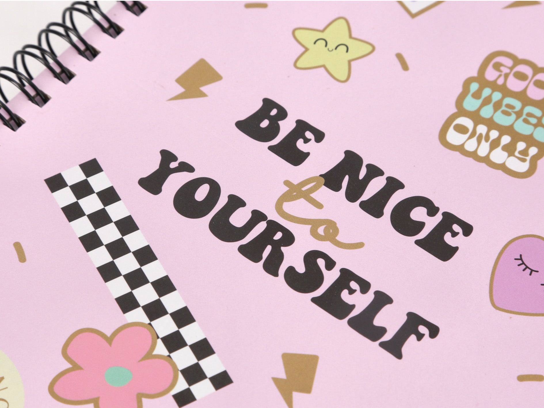 Para la mochila, el bolso o tu rincón favorito de inspiración, la Libreta con anillas – Be nice to yourself es la aliada perfecta que siempre desearás tener cerca. Un mensaje motivador que te recordará ser amable contigo mismo, ideal para regalar y compartir sonrisas.