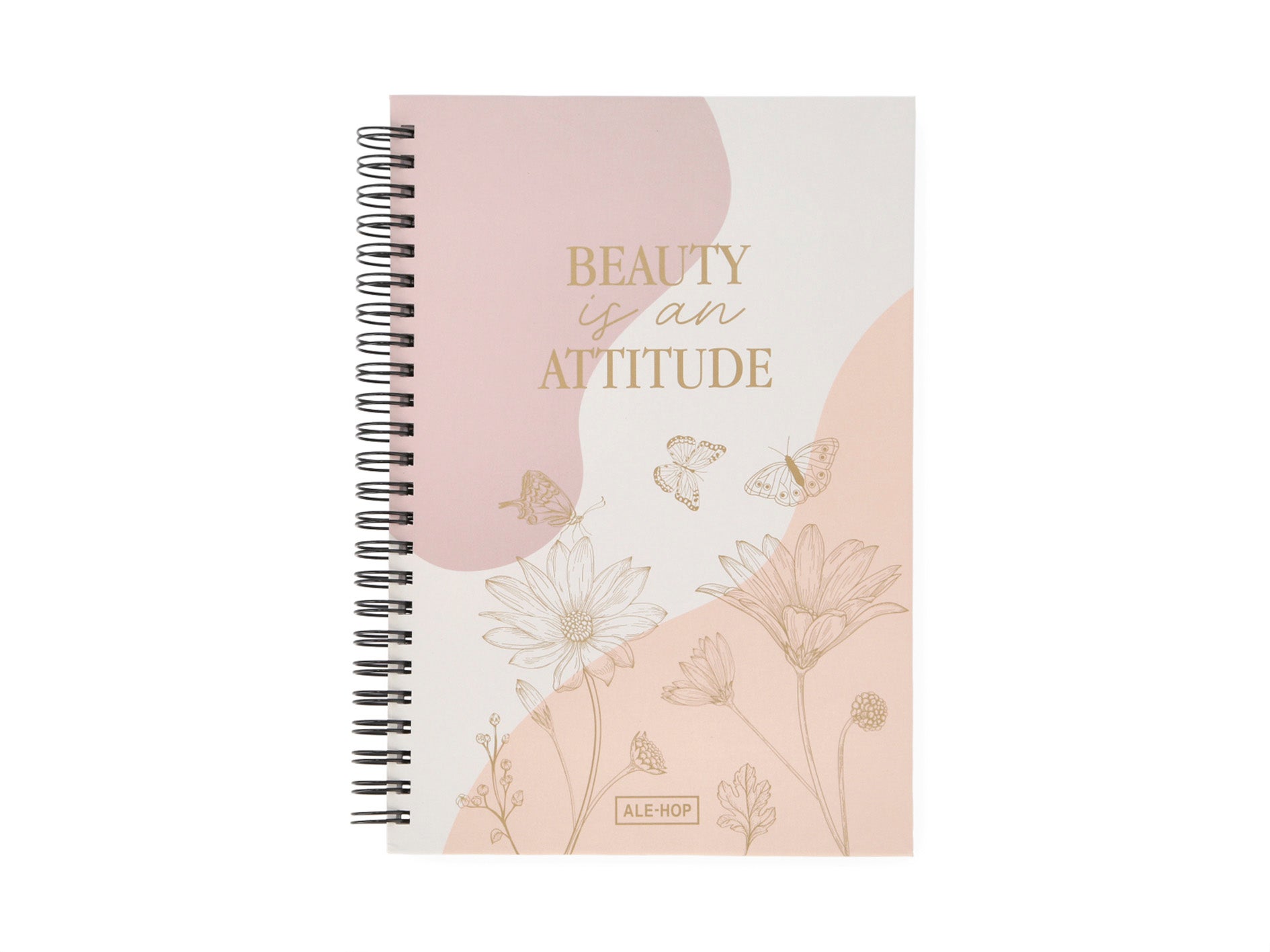 La Libreta con anillas – Beauty is an attitude de ALE-HOP está lista para acompañarte a donde vayas, desde el bolso hasta la oficina. Con una portada inspiradora que te recordará que la belleza es una actitud, esta libreta se convierte en tu compañera perfecta para capturar ideas brillantes y pensamientos fugaces. No sólo es práctica, sino que también añadirá ese toque especial a tu día a día.