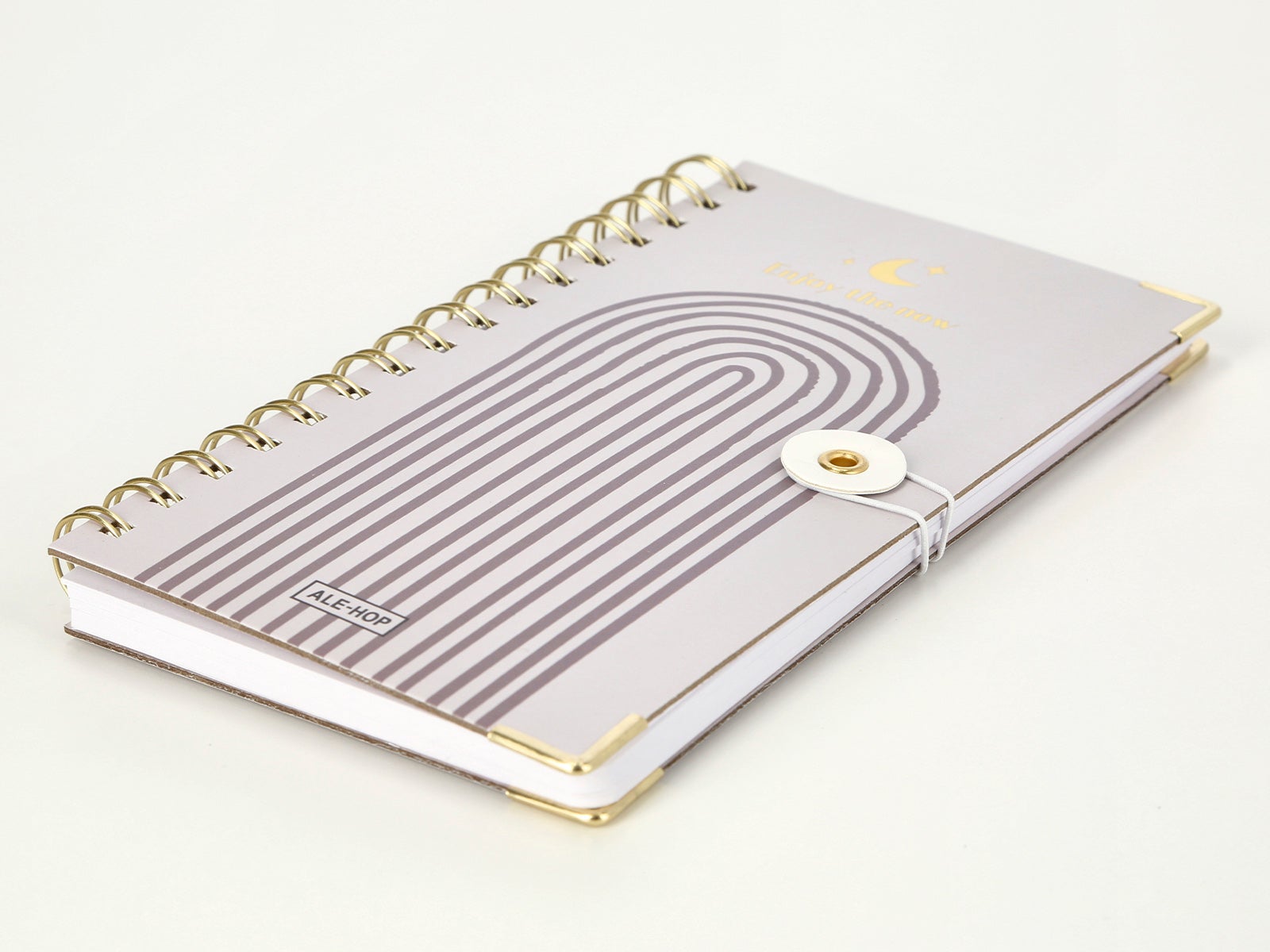 - Elegantes detalles dorados: desde el toque sutil en las esquinas, hasta la espiral que aporta brillo y estilo.