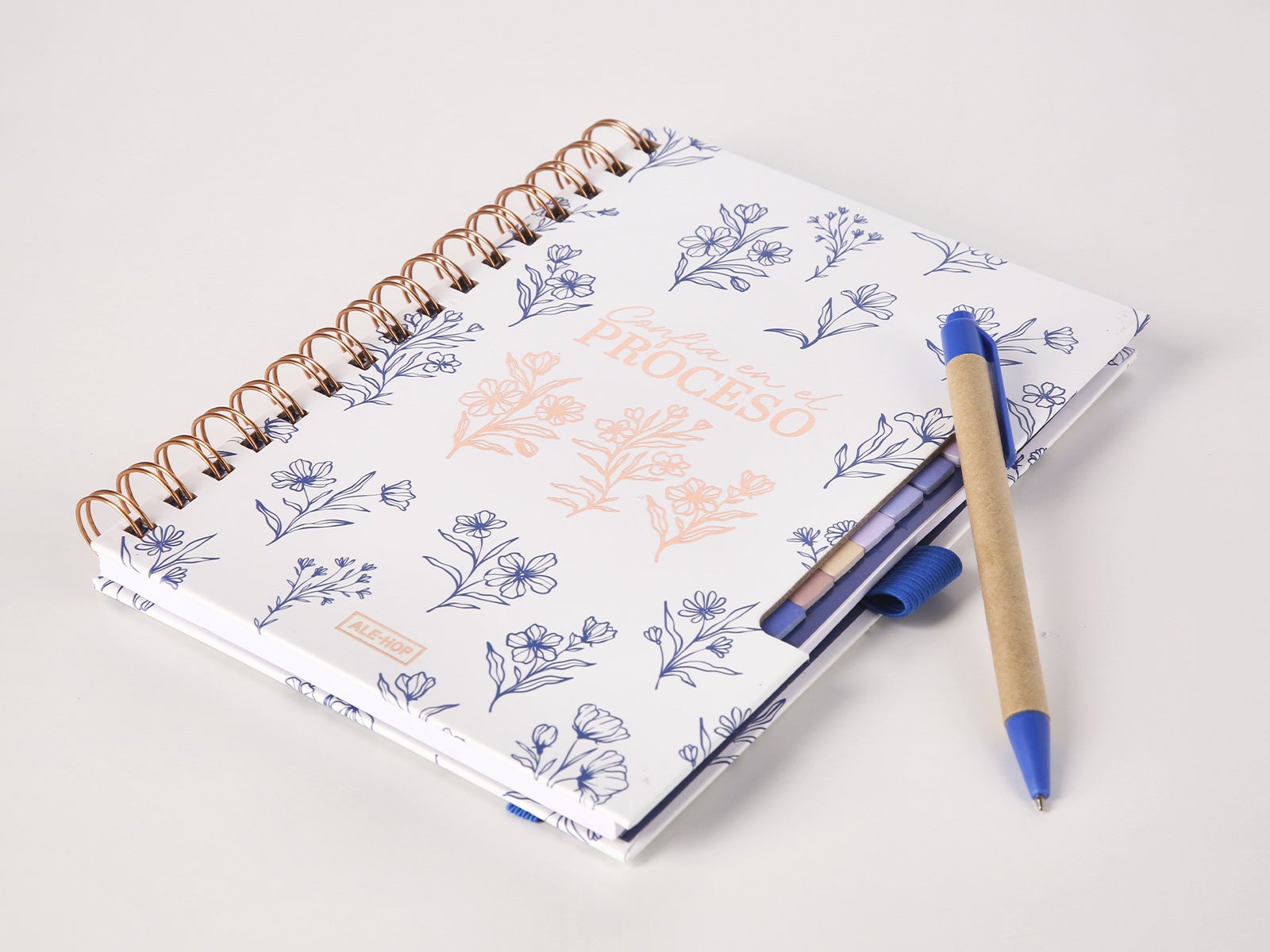 La Libreta con boli - Confía en el proceso de ALE-HOP es tu acompañante ideal para esos momentos de inspiración inesperada. No más olvidar ideas brillantes o tareas importantes. Escribe, sueña y confía en cada trazo de tu boli.