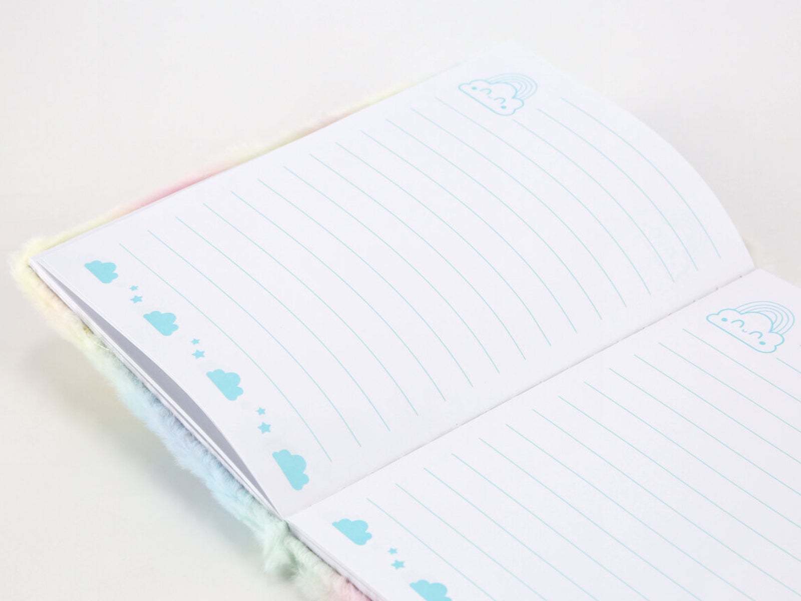 - Interior temático: Las páginas rayadas de la libreta llevan un diseño agradable con arcoíris, nubes y estrellas a lo largo de los márgenes. ¿Será dibujo o escritura? ¡Tú decides con esta versátil libreta!