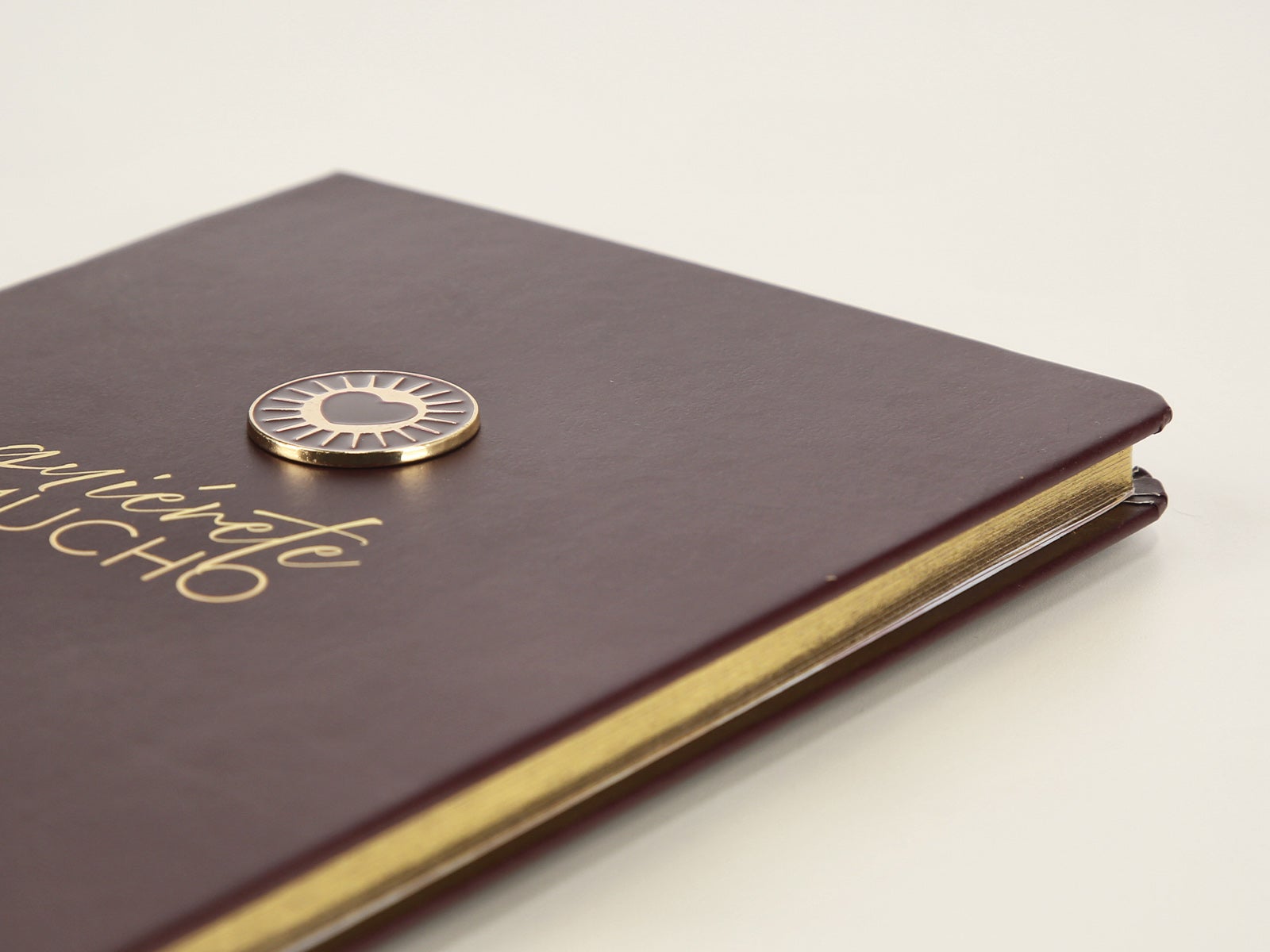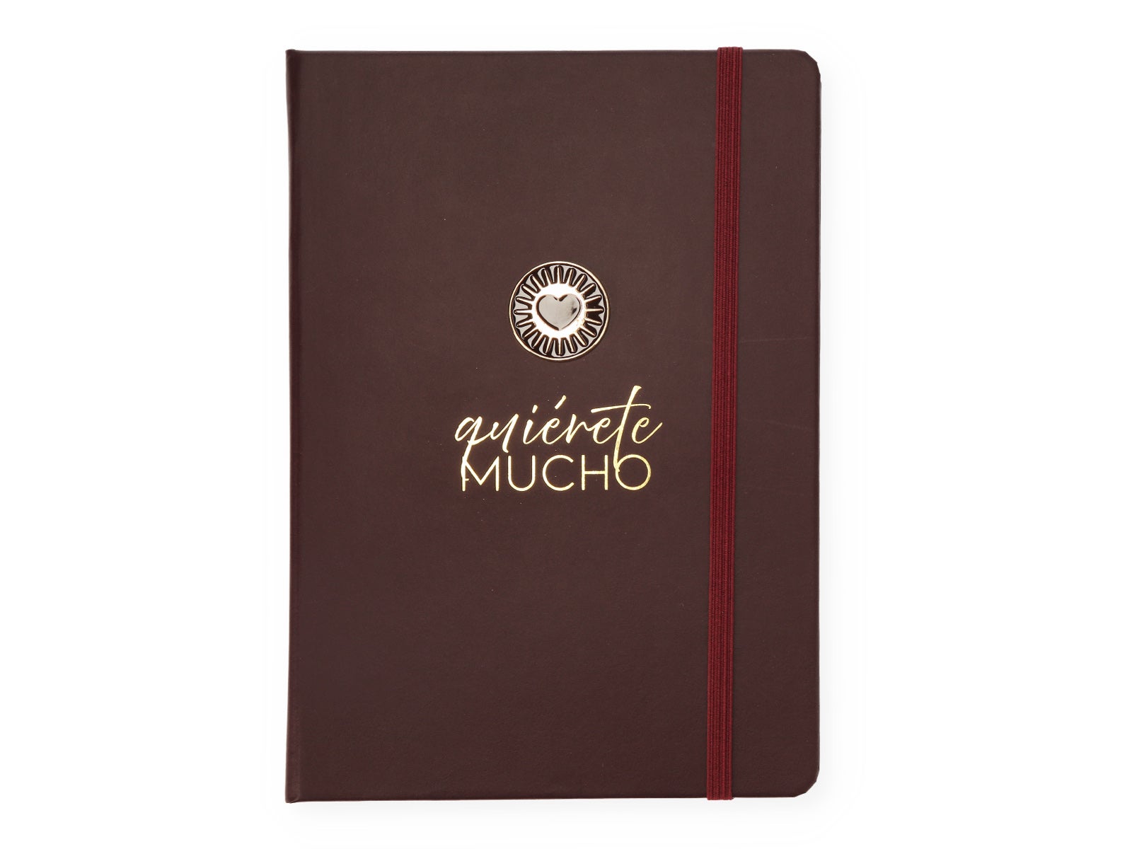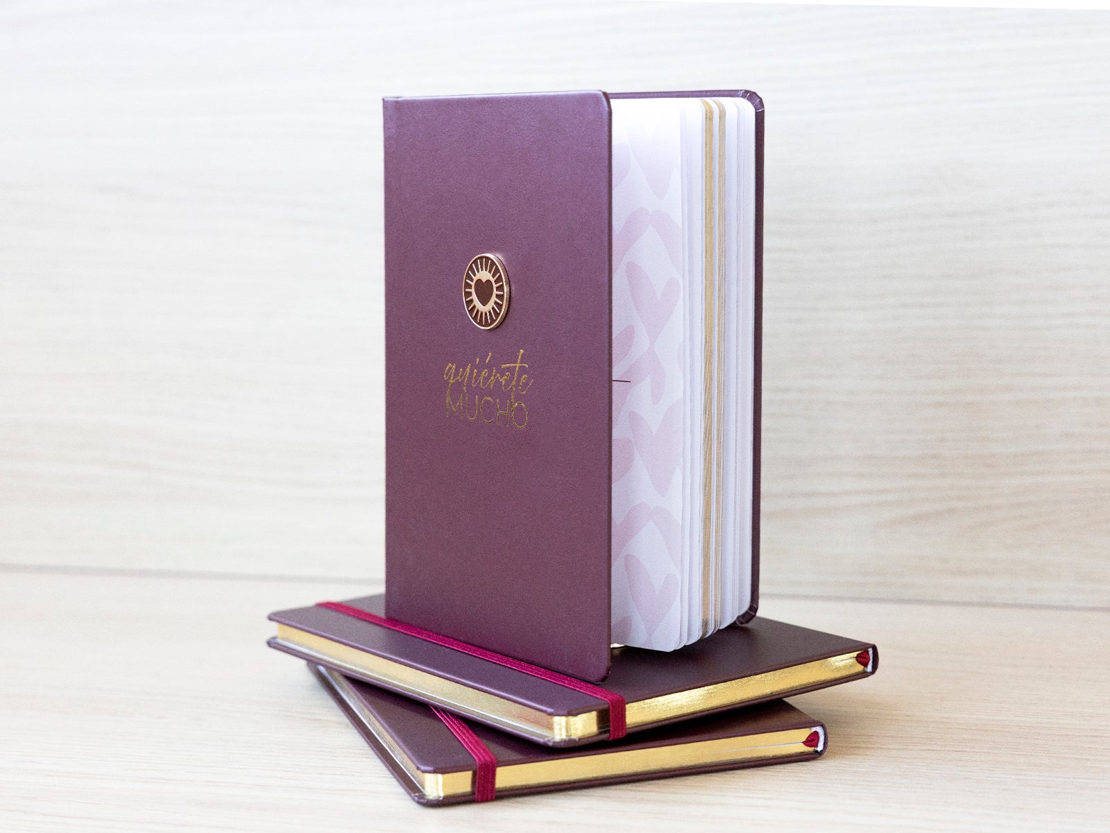 Dale un respiro a tu rutina y ríndete al encanto de esta Libreta elegante - Quiérete mucho. No es solo un lugar donde escribir, es una declaración de intenciones. Su diseño sofisticado en un tono granate intenso y el mensaje inspirador grabado en dorado están pensados para recordarte lo importante que eres cada vez que la abras. Es la compañera perfecta para llevar a la oficina, a clase o para tus momentos de reflexión en casa con ese toque único y positivo de ALE-HOP.
