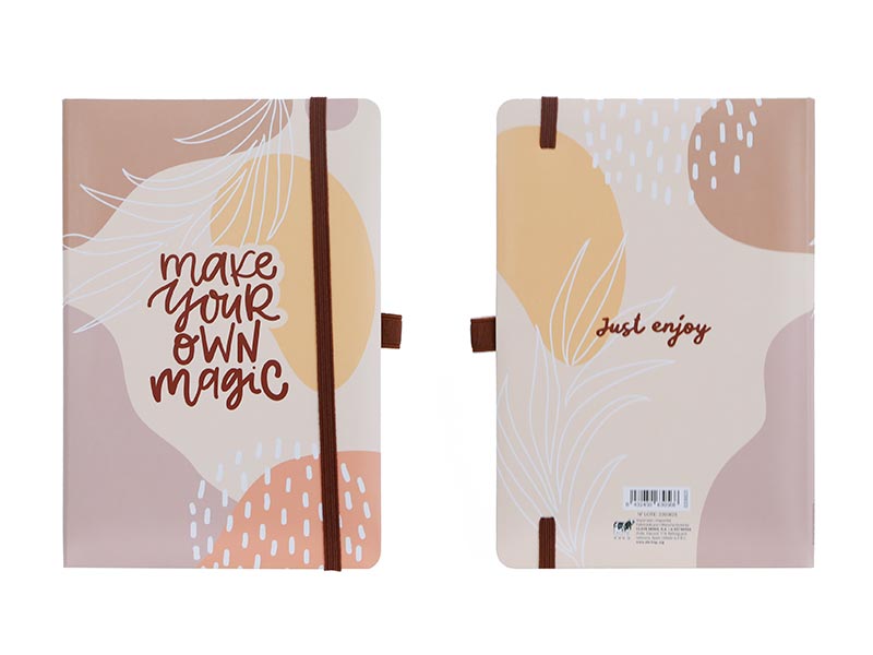 Frase: en la portada ‘make your own magic’ y en la contraportada ‘just enjoy’. En ALE-HOP somos fans de la magia y por eso queremos que tu futura libreta te lo recuerde cada día.