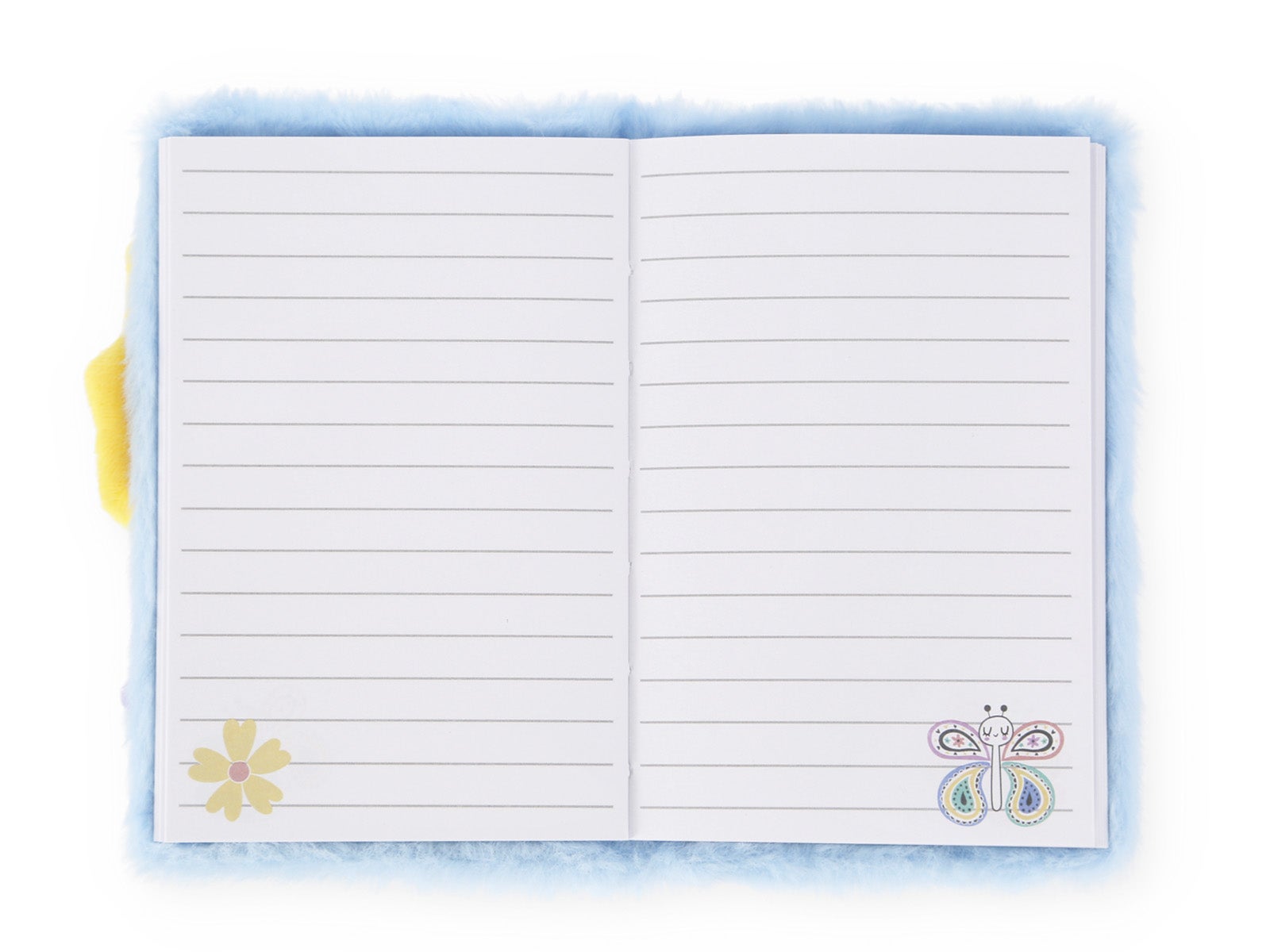 Libreta Peluda Mariposa Azul, suave y alegre. Con su cubierta esponjosa y diseño encantador, es perfecta para notas diarias y creatividad. Un toque juguetón y sereno de ALE-HOP.