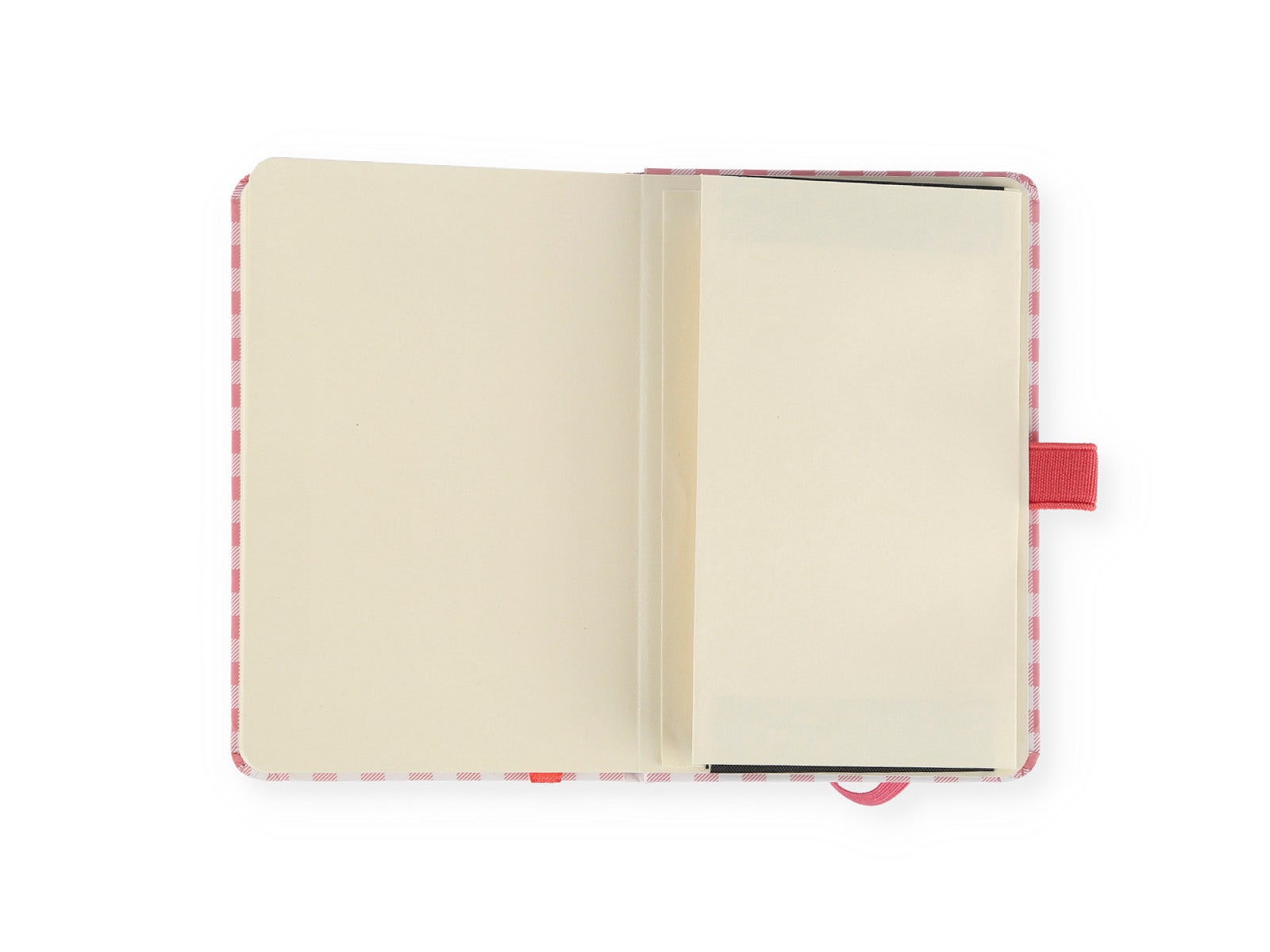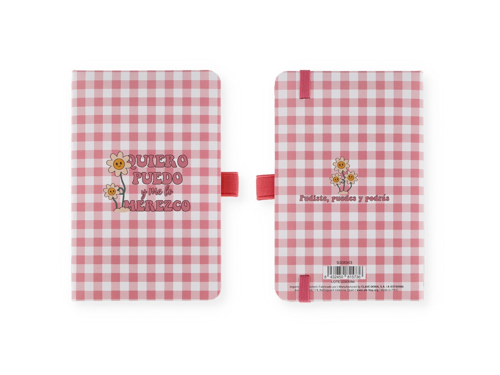Diseño: libreta sin anillas con banda elástica en el lateral para poder cerrarla y que no se te escape nada y goma para colocar tu boli favorito.