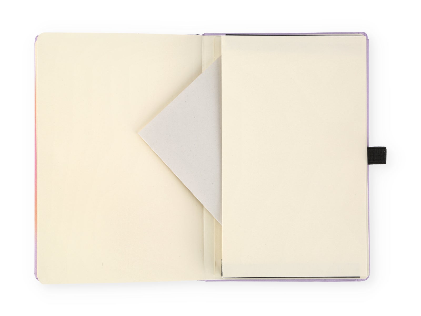 - Diseño: libreta sin anillas con una elegante banda elástica en el lateral para mantenerla cerrada y segura. Además, incluye una goma para colocar tu bolígrafo favorito.