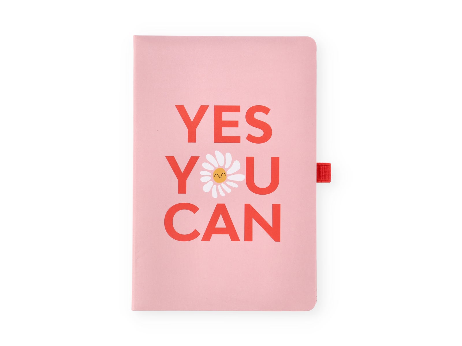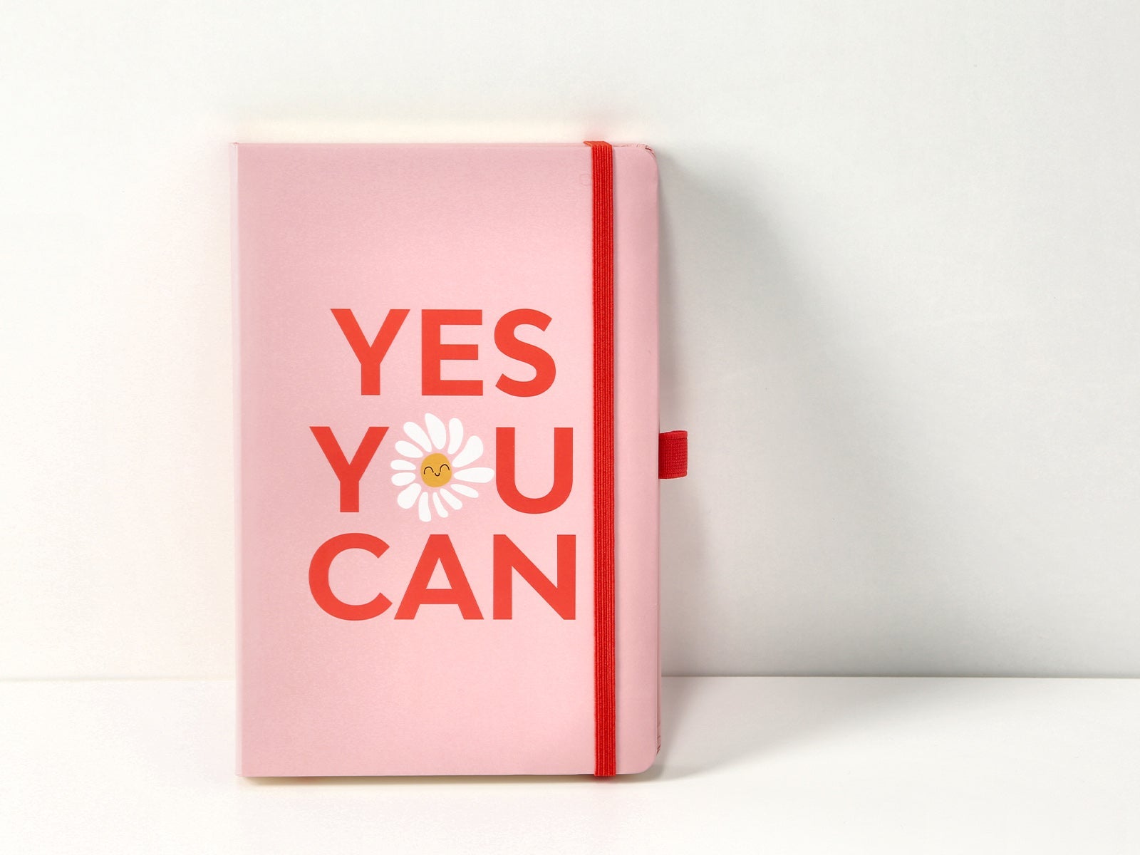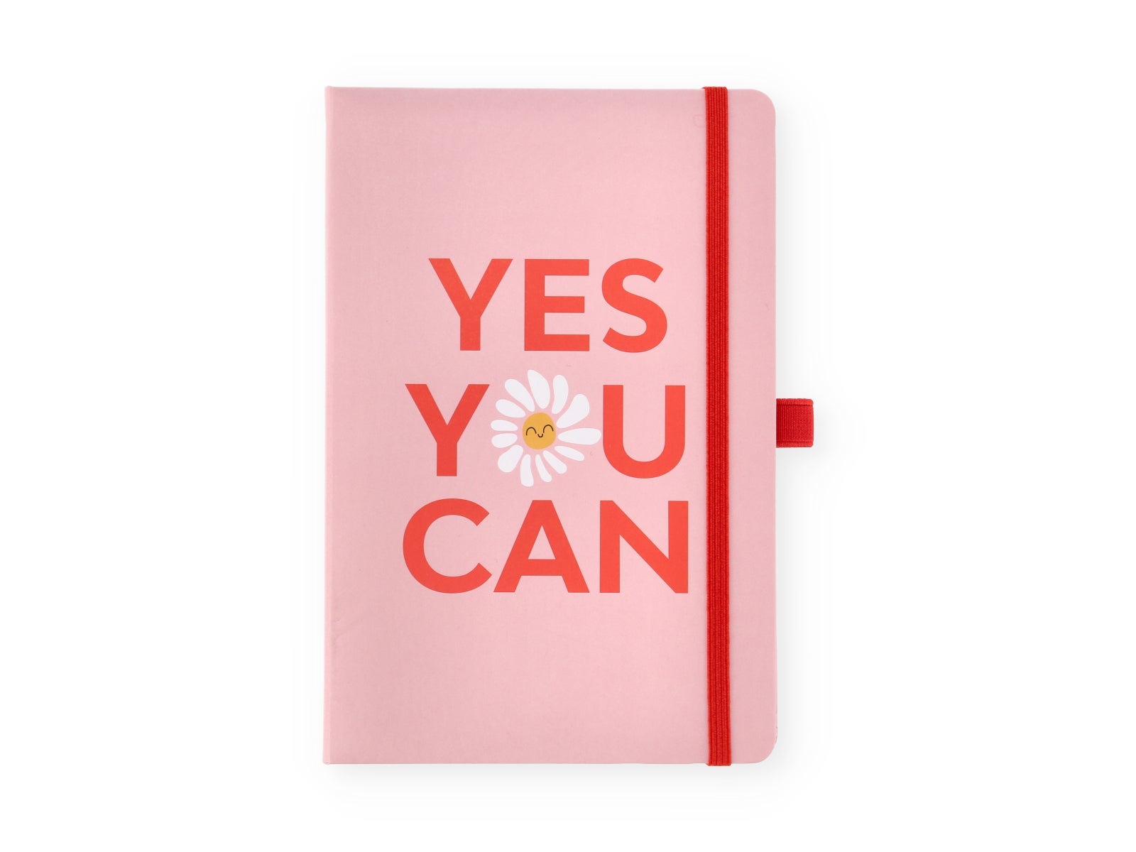 ¡Todos necesitamos un poco de motivación de vez en cuando! Esta Libreta XL – Yes You Can es más que una herramienta de escritura, es un aliento constante para alcanzar tus metas y vivir tus sueños. Sus vibrantes colores rosa y rojo y su adorable margarita sonriente están listos para darle vida a tus días.- Diseño: Con nuestra libreta, podemos decir adiós a los papeles volando por todos lados. Gracias a su cómoda banda elástica roja, tus notas y secretos estarán siempre seguros.