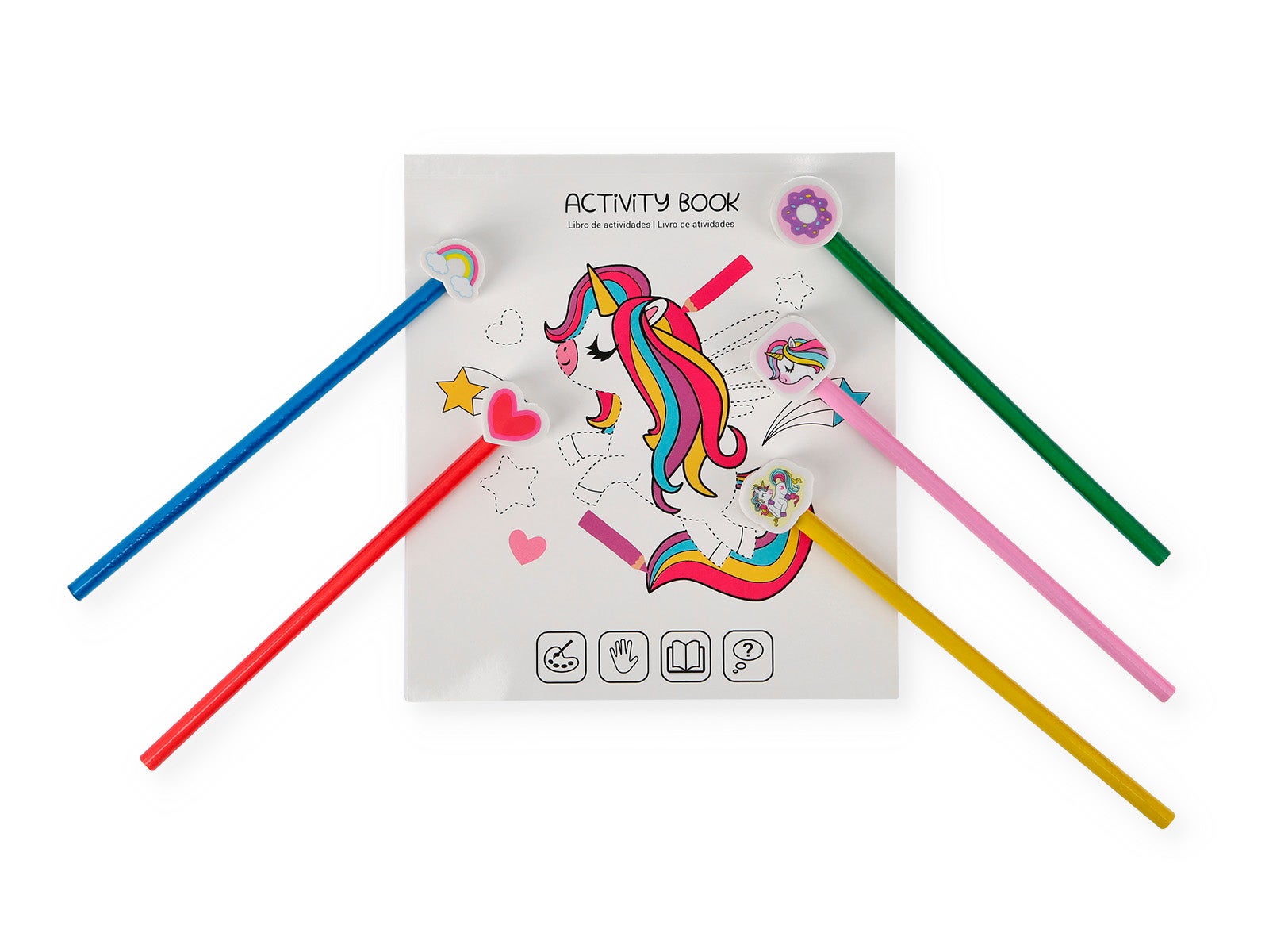 Sumérgete en el fascinante universo de los unicornios con el Libro de actividades unicornio de ALE-HOP. Este libro con ilustraciones llenas de imaginación y creatividad, te invita a desatar al artista que llevas dentro. Con divertidas y coloridas portadas, incluye actividades para colorear, resolver laberintos, completar series y mucho más.