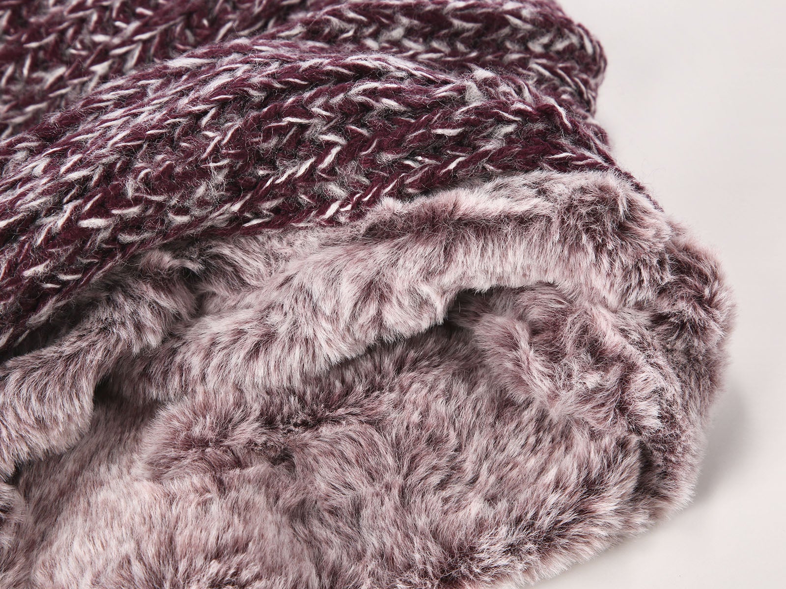 - Diseño: tipo braga o cuello, este accesorio está tejido en un elegante color morado por fuera, con un interior suavito que parece una caricia en el cuello.