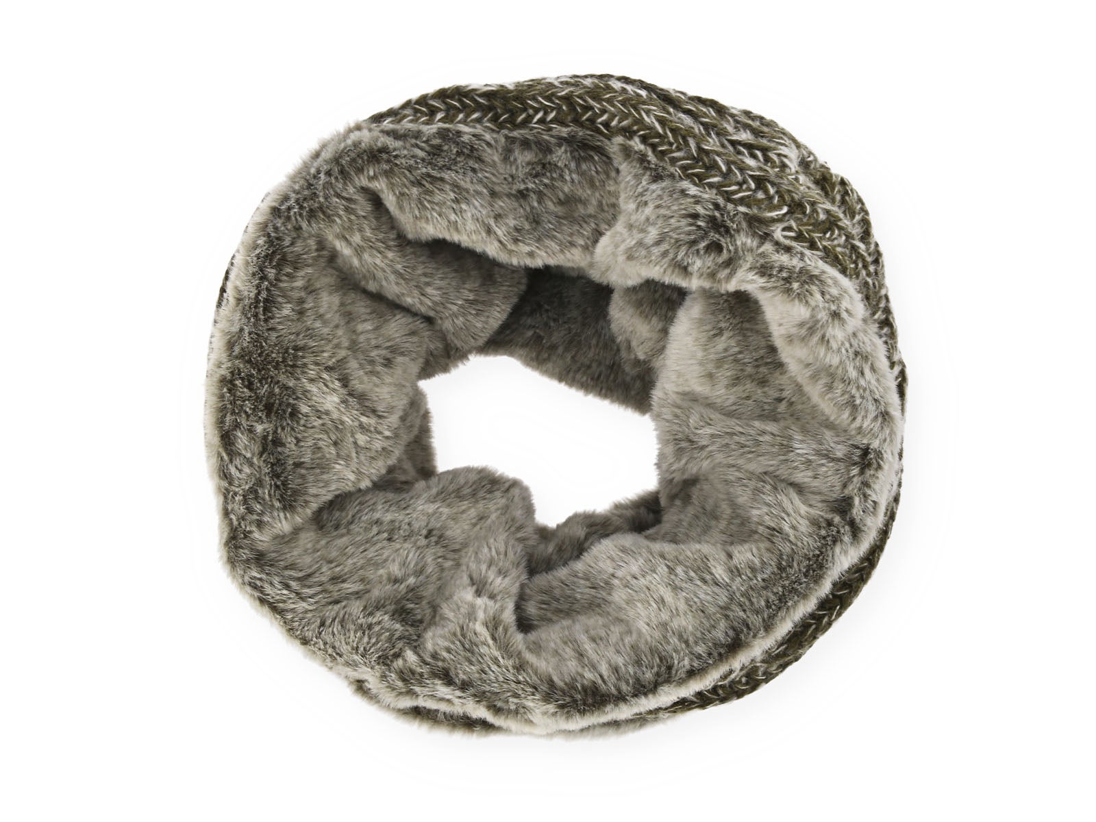 - Diseño: Un loop tipo braga con un exterior de lana suave en un elegante tono verde y un interior que es pura ternura al tacto.