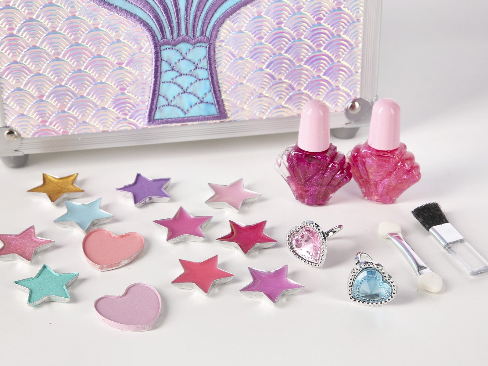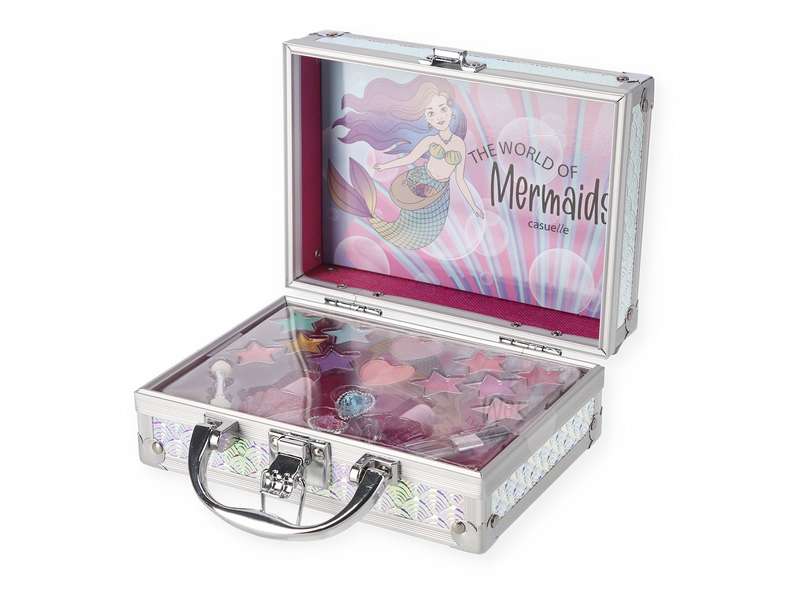 El Maletín makeup sirena - The world of mermaids de ALE-HOP es el secreto mejor guardado de las profundidades. Este maletín es la puerta de entrada a un mundo de fantasía y colores vibrantes. Perfecto para liberar tu belleza interna y hacer que cada día brilles como la sirena que siempre quisiste ser. ¡Deja que el encanto marino inspire cada pincelada de color!