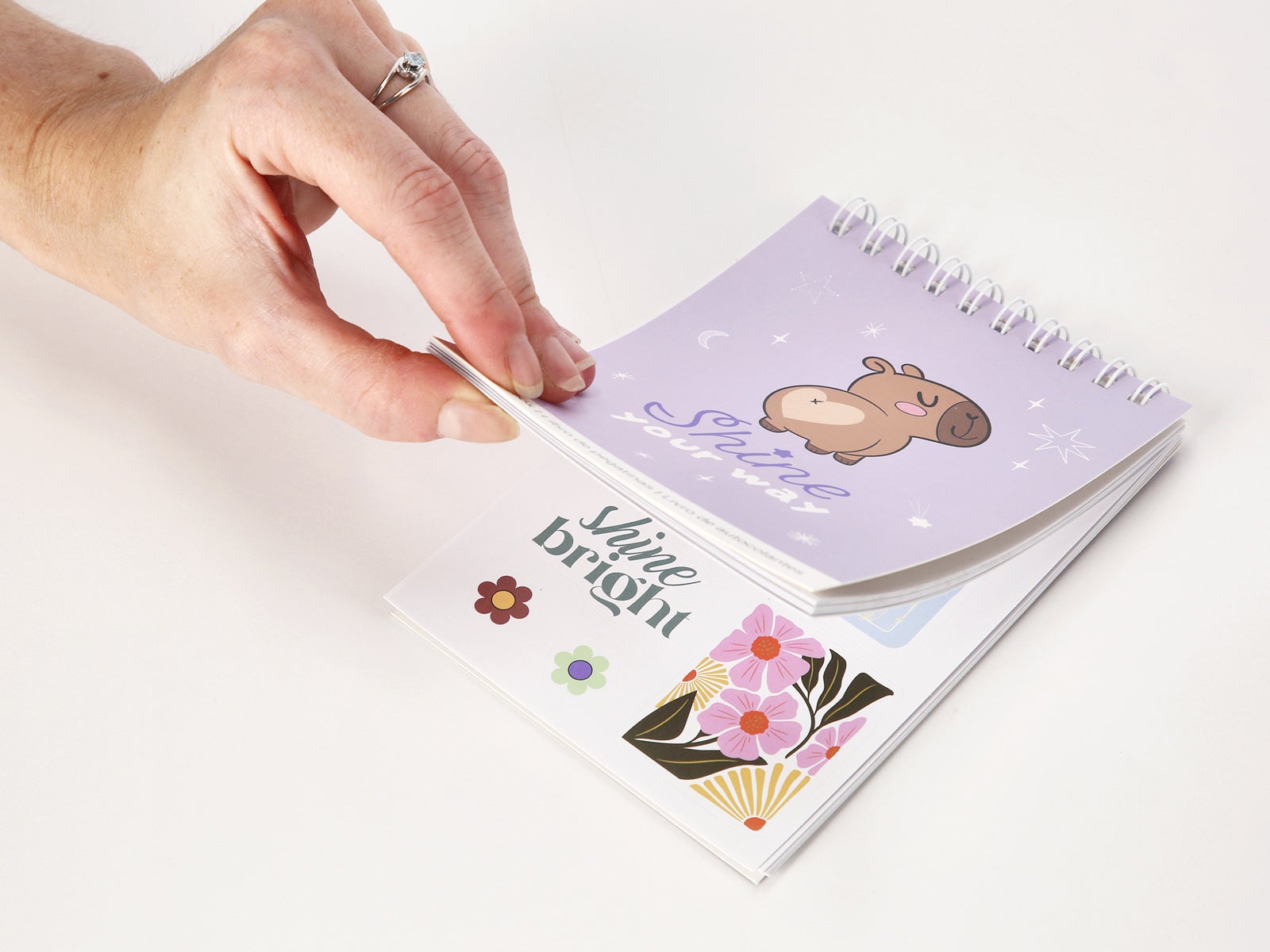 La Mini libreta pegatinas capibara de ALE-HOP es el accesorio que necesitas para llevar el orden a otro nivel de ternura. ¡Nunca más dejarás escapar una idea! Con esta pequeña compañera de aventuras, anotar tus pensamientos y planes será tan divertido como acariciar una de estas encantadoras criaturas.