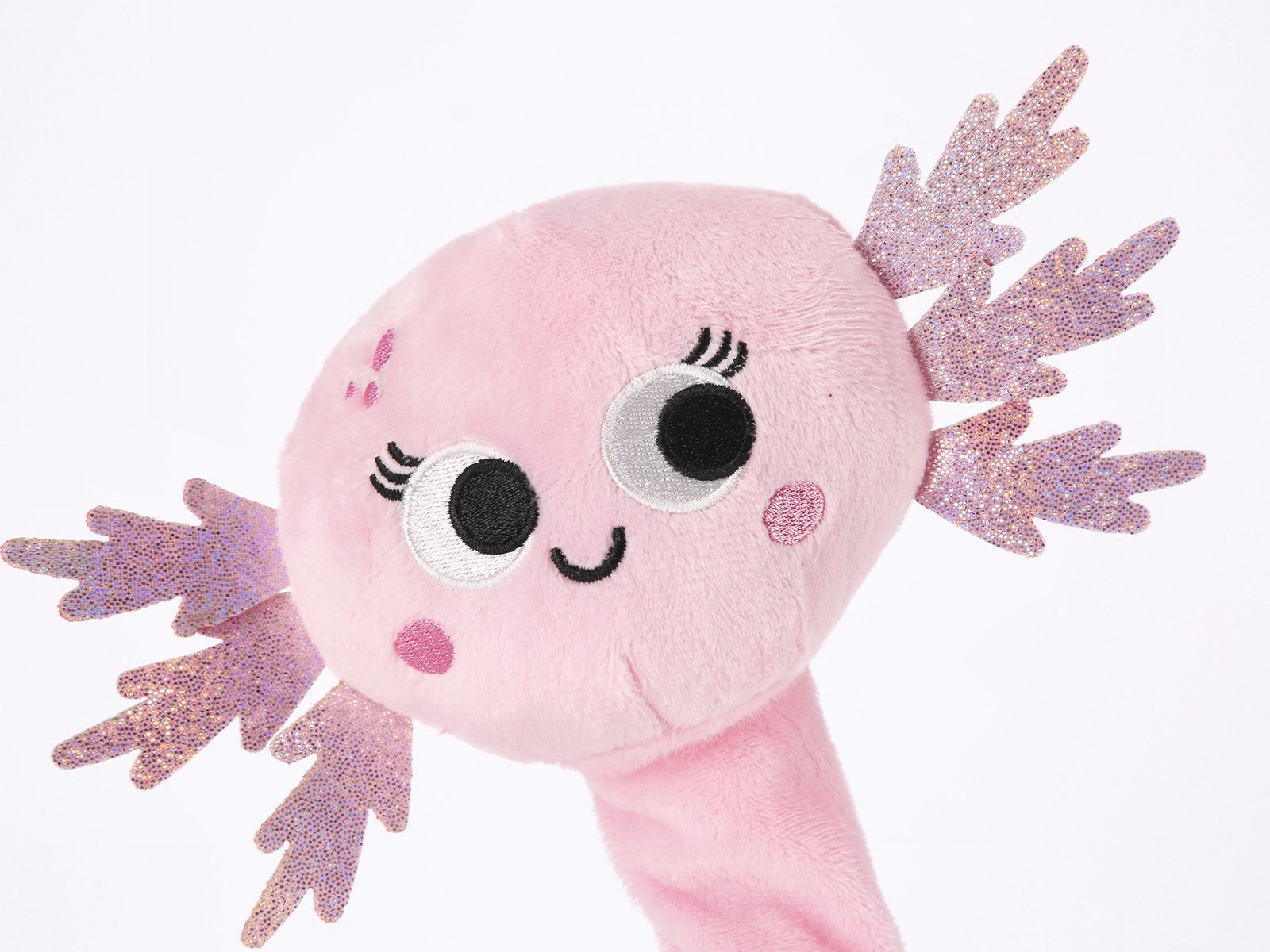 - Amabilidad anfibia: Este ajolote es amante de las aventuras en casa y siempre está listo para una siesta.