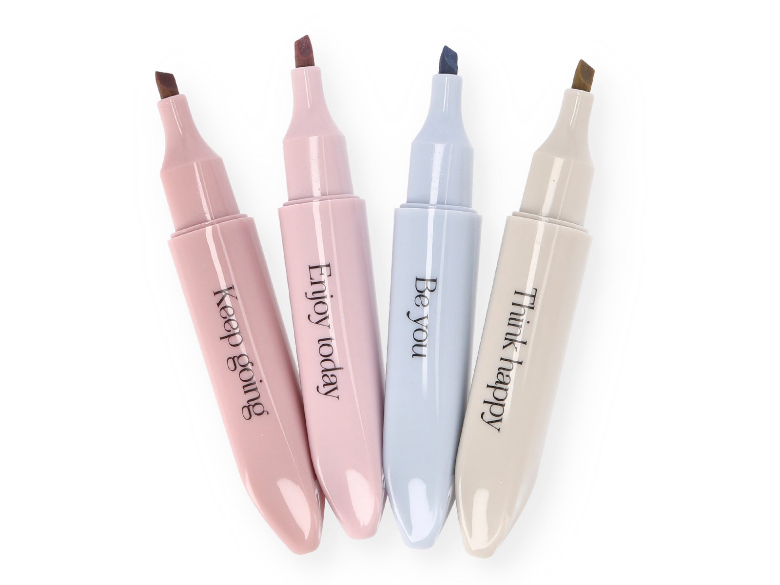 Pack de 4 subrayadores mini – Keep going, Enjoy today, Bonjour, Think happy