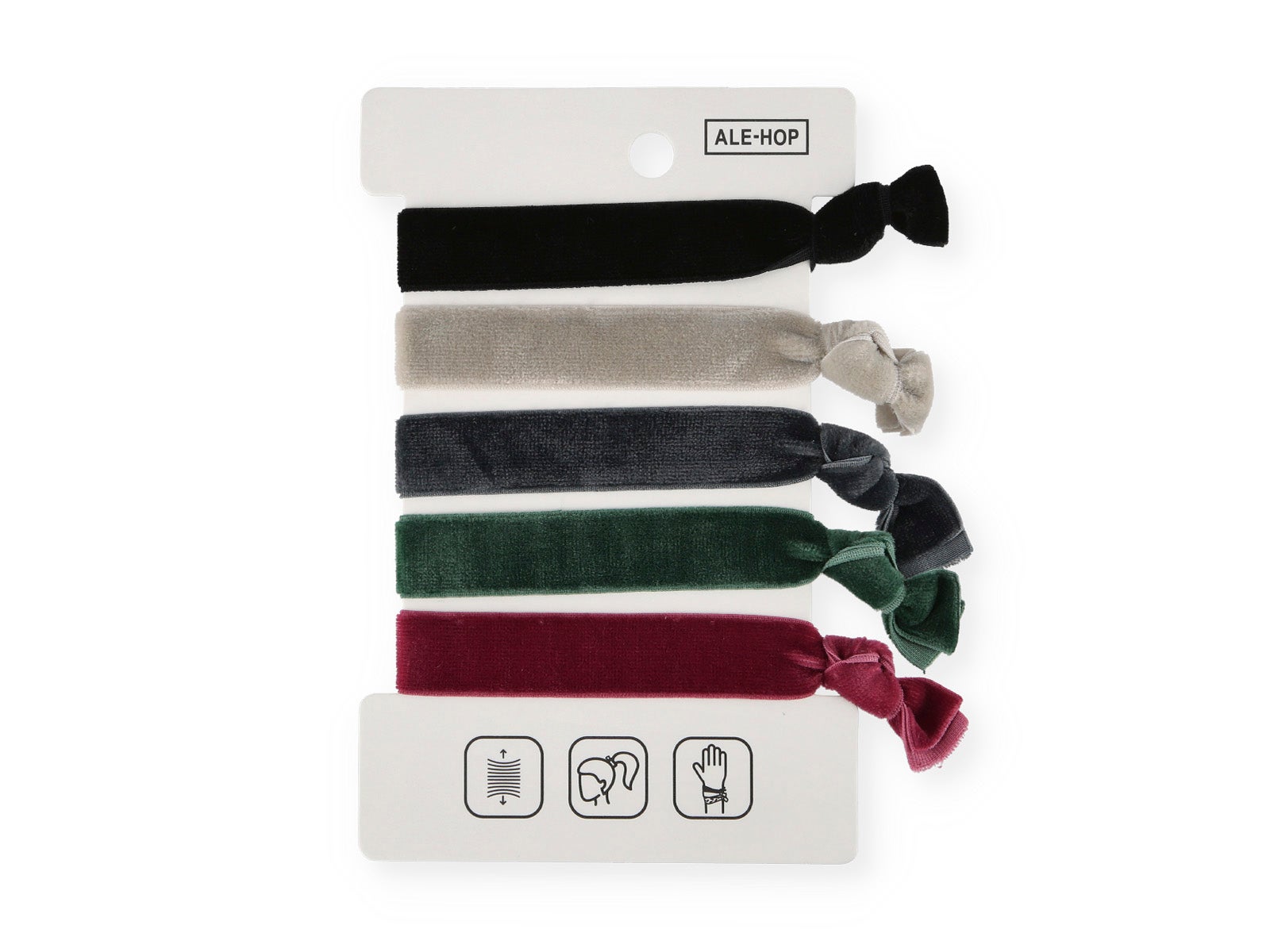 Pack de 5 coleteros ALE-HOP de tonos oscuros con lazos. Perfectos para cualquier ocasión, añaden un toque chic y divertido a tu look. Suavidad y elasticidad garantizadas. Recuerda, cuidarlos es fácil, solo evita lejía. ¡Atrévete a variar tus tonalidades!