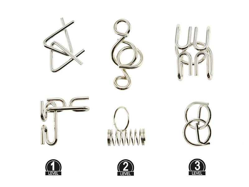 Este puzzle metal 1 pack-6 será todo un reto para ti y tu familia. Uno de los juegos de ingenio más divertido de nuestra colección. ¿Quién será el primero en resolverlo? Pasaréis un rato de lo más entretenido intentando separar las piezas de sus 6 acertijos de metal. Y, ¡será súper divertido! Subirás el nivel de dificultad a medida que vayas avanzando con tus capacidades.