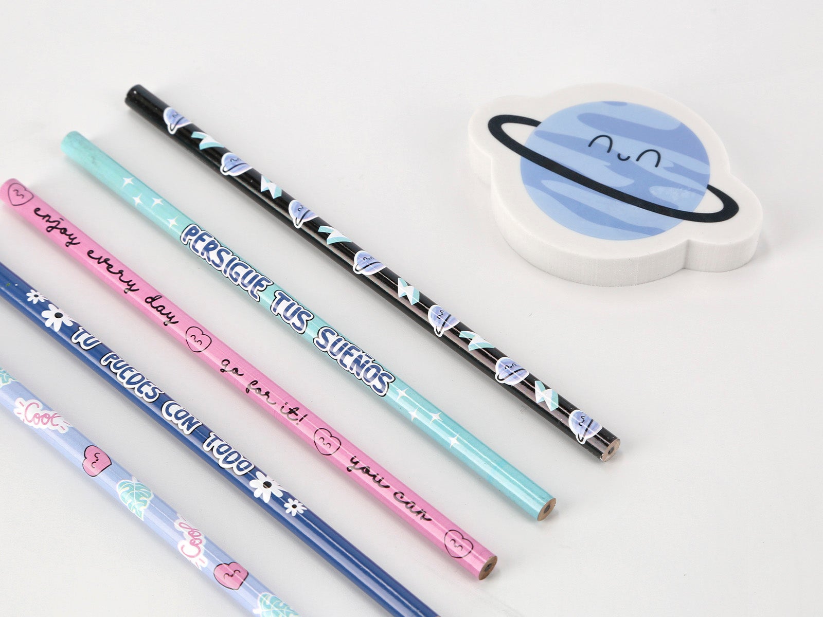 ¡Dale un giro galáctico a tu escritorio con este pack de lápices y goma planeta! Perfecto para todo amante del universo, este pack te invita a explorar tu creatividad mientras te sumerges en tu propio espacio de diversión.
